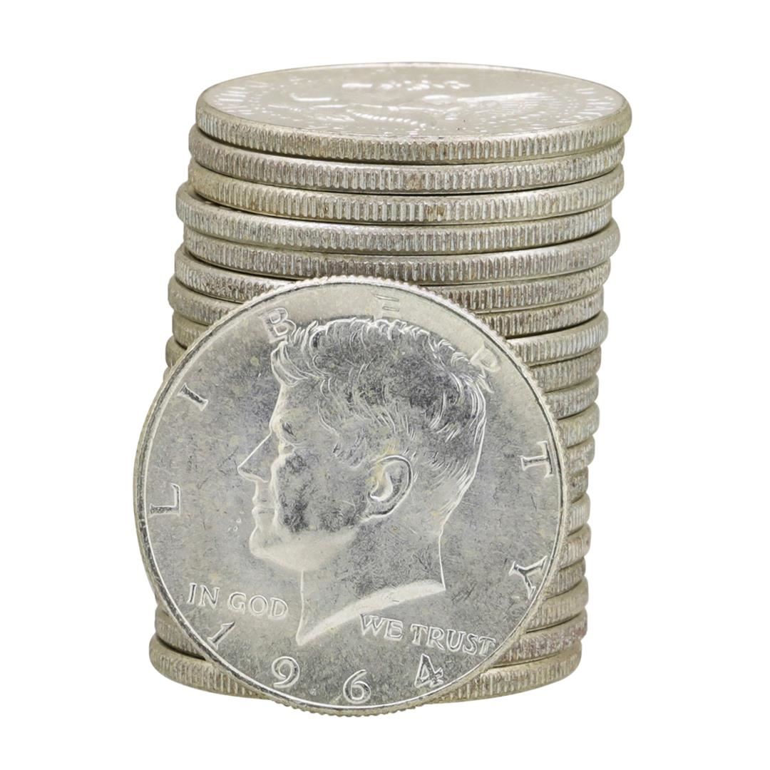 One Roll of (20) 1964 Brilliant Uncirculated Kennedy Half Dollars.