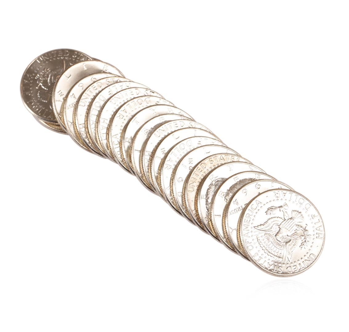 One Roll of (20) 1964 Uncirculated Kennedy Half Dollar Coins.