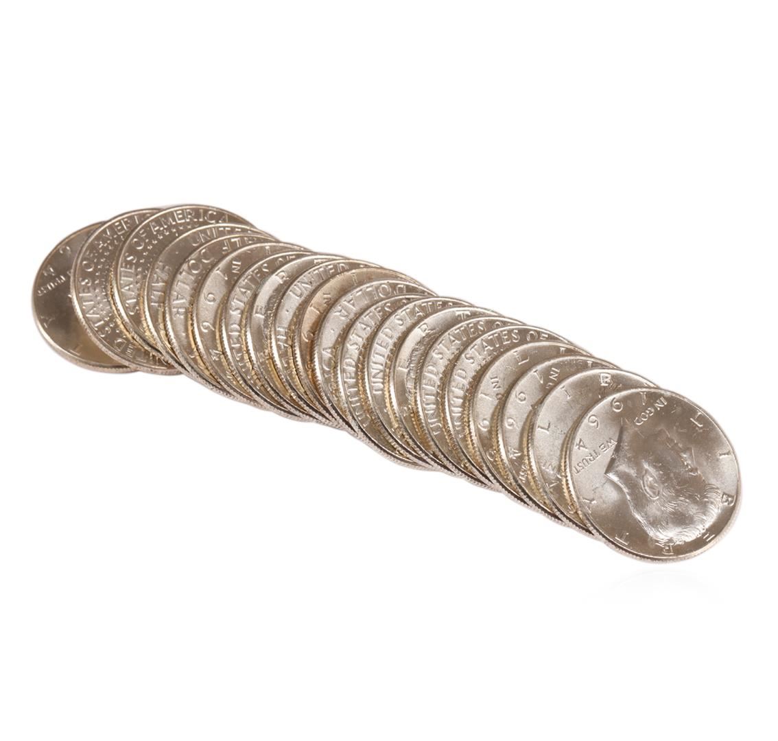 One Roll of (20) 1964 Uncirculated Kennedy Half Dollar Coins.