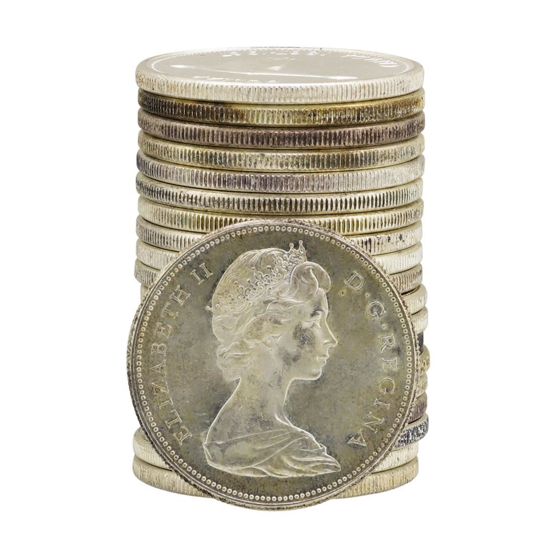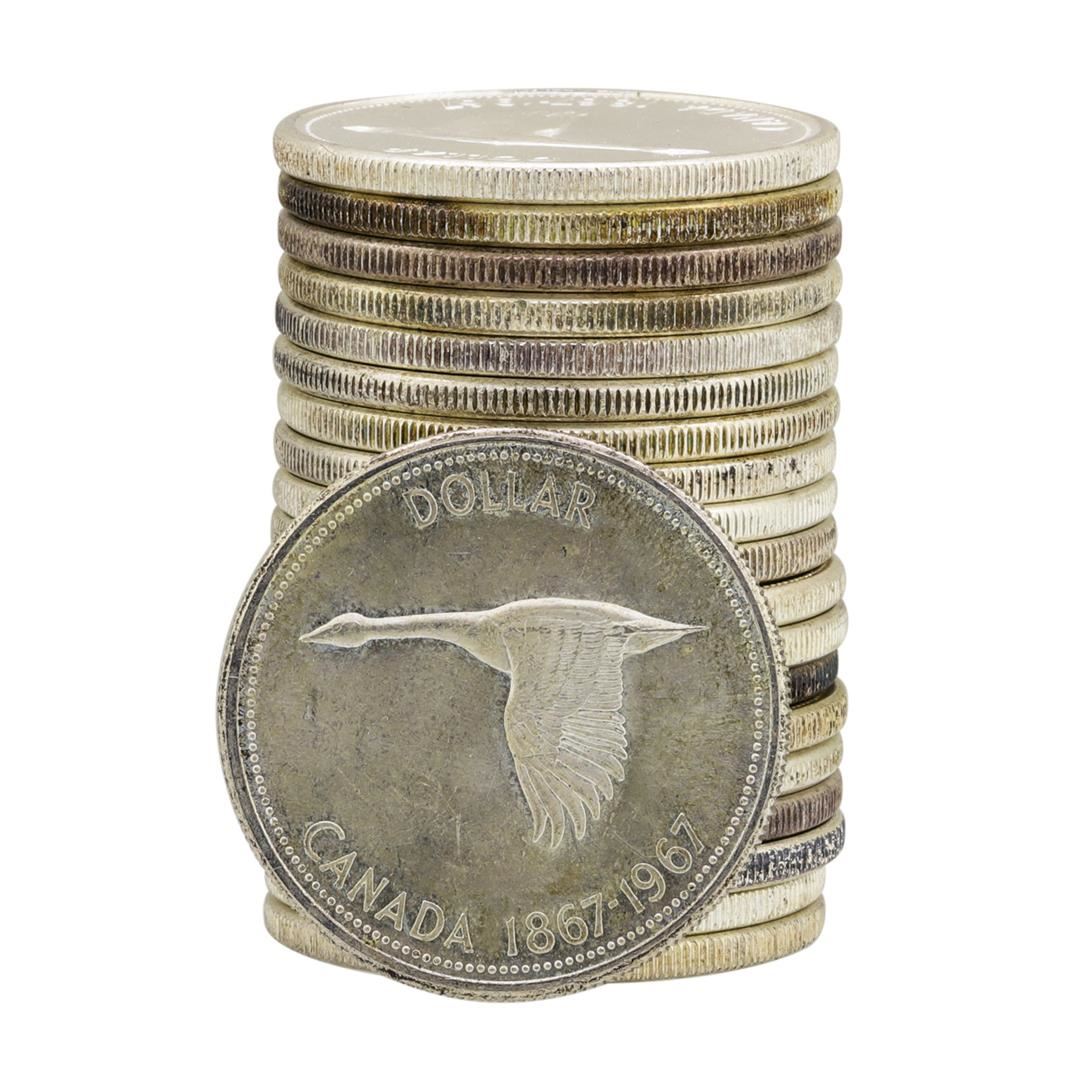 One Roll of (20) 1967 Brilliant Uncirculated Canadian Dollars.