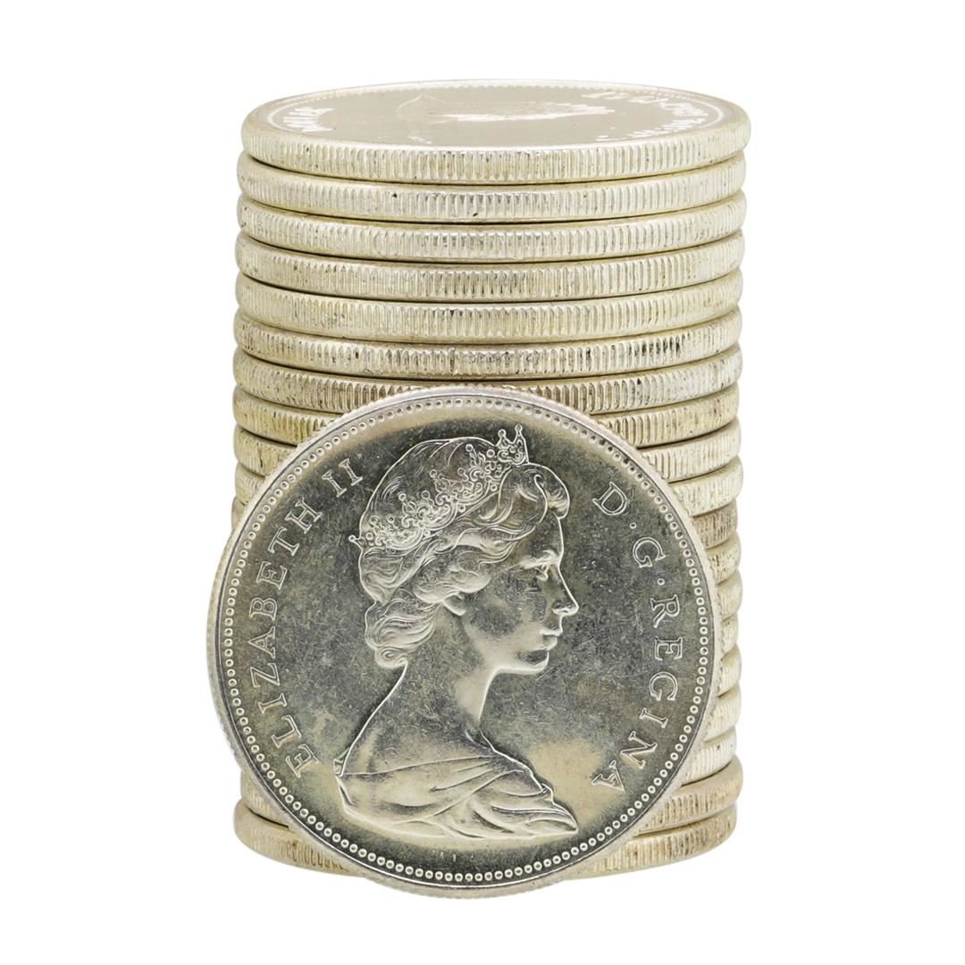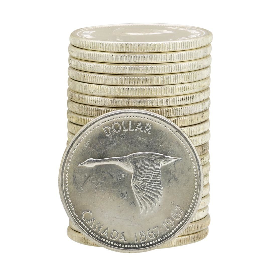 One Roll of (20) 1967 Brilliant Uncirculated Canadian Dollars.