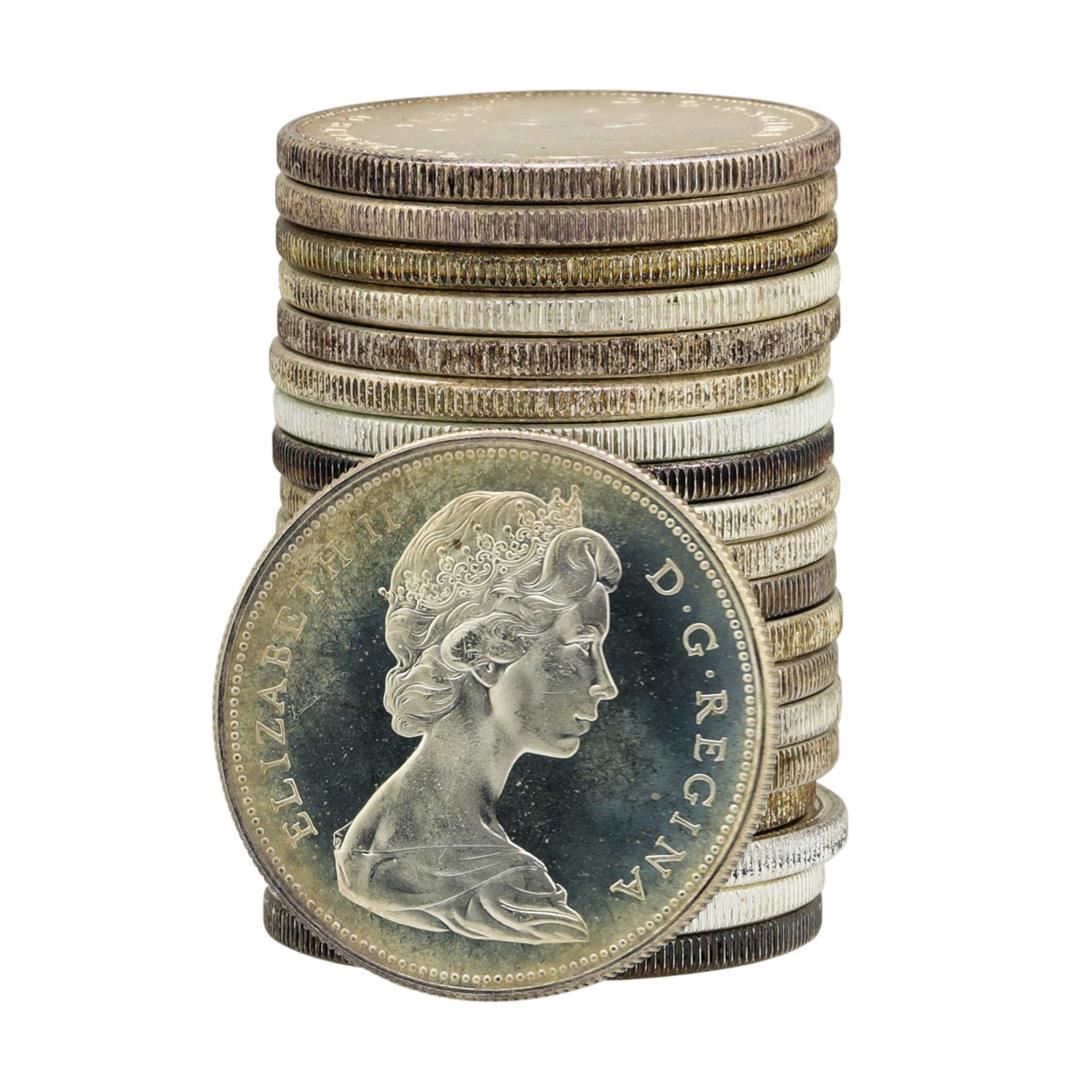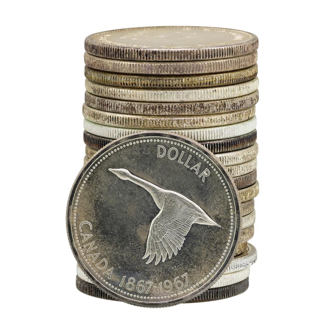 One Roll of (20) 1967 Brilliant Uncirculated Canadian Dollars.