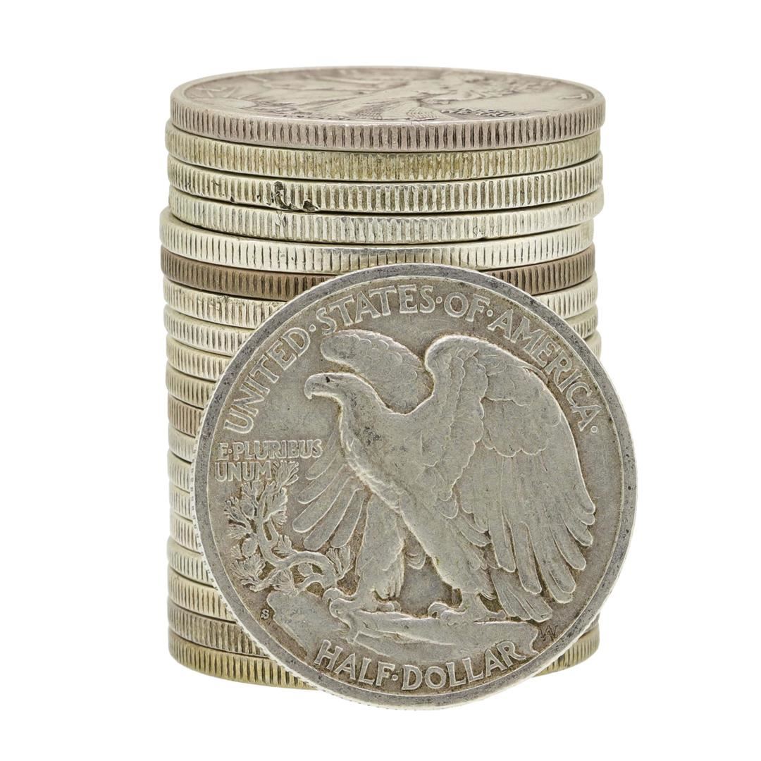 Roll of (20) Assorted Date Walking Liberty Half Dollar Coins Circulated