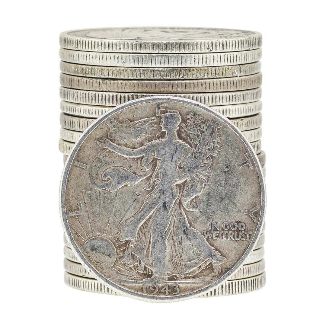 Roll of (20) Assorted Date Walking Liberty Half Dollar Coins Circulated