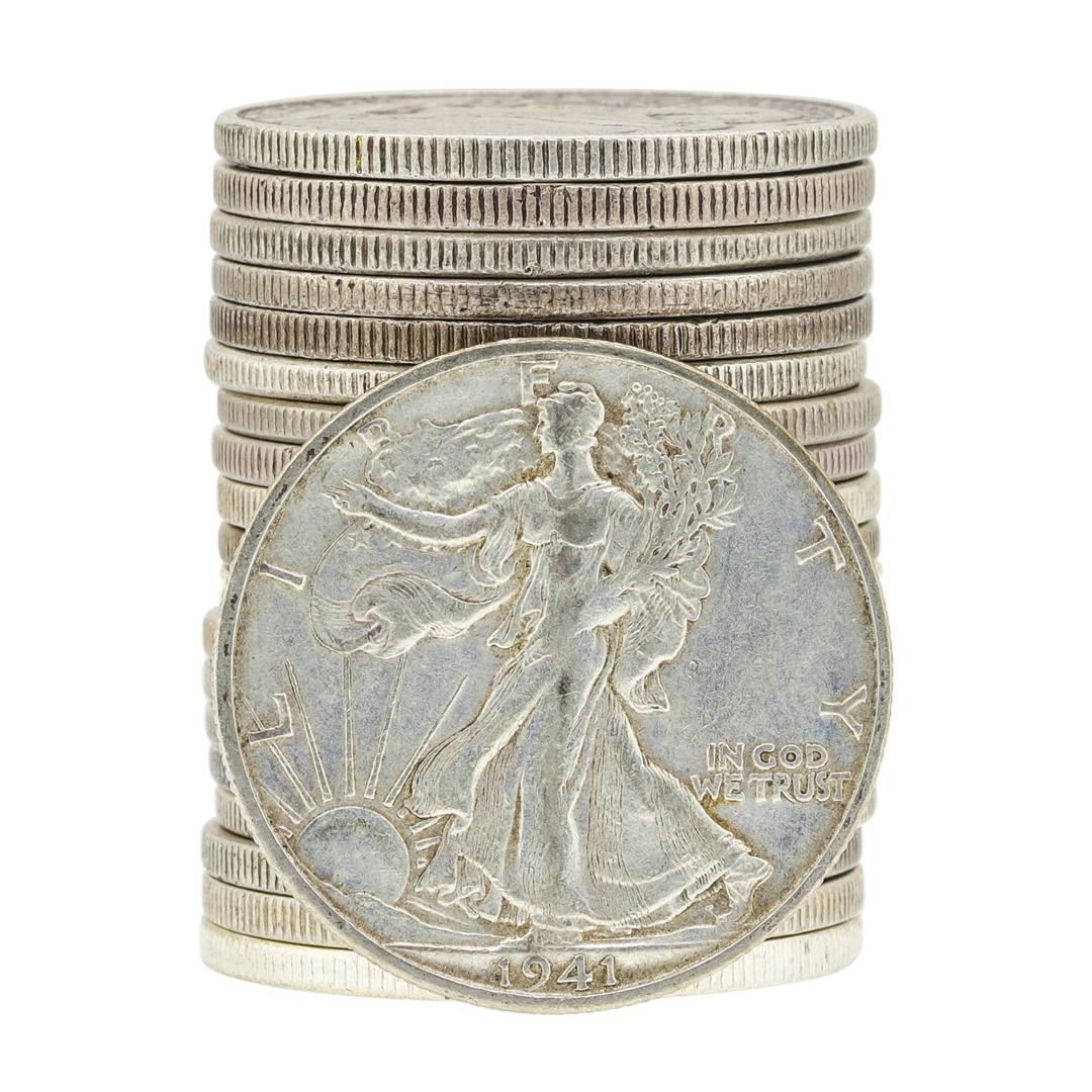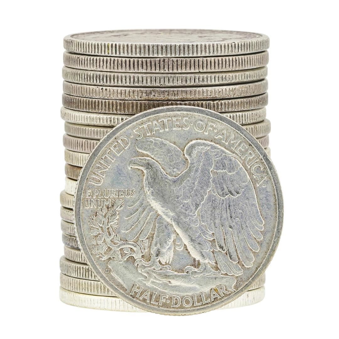 Roll of (20) Assorted Date Walking Liberty Half Dollar Coins Circulated