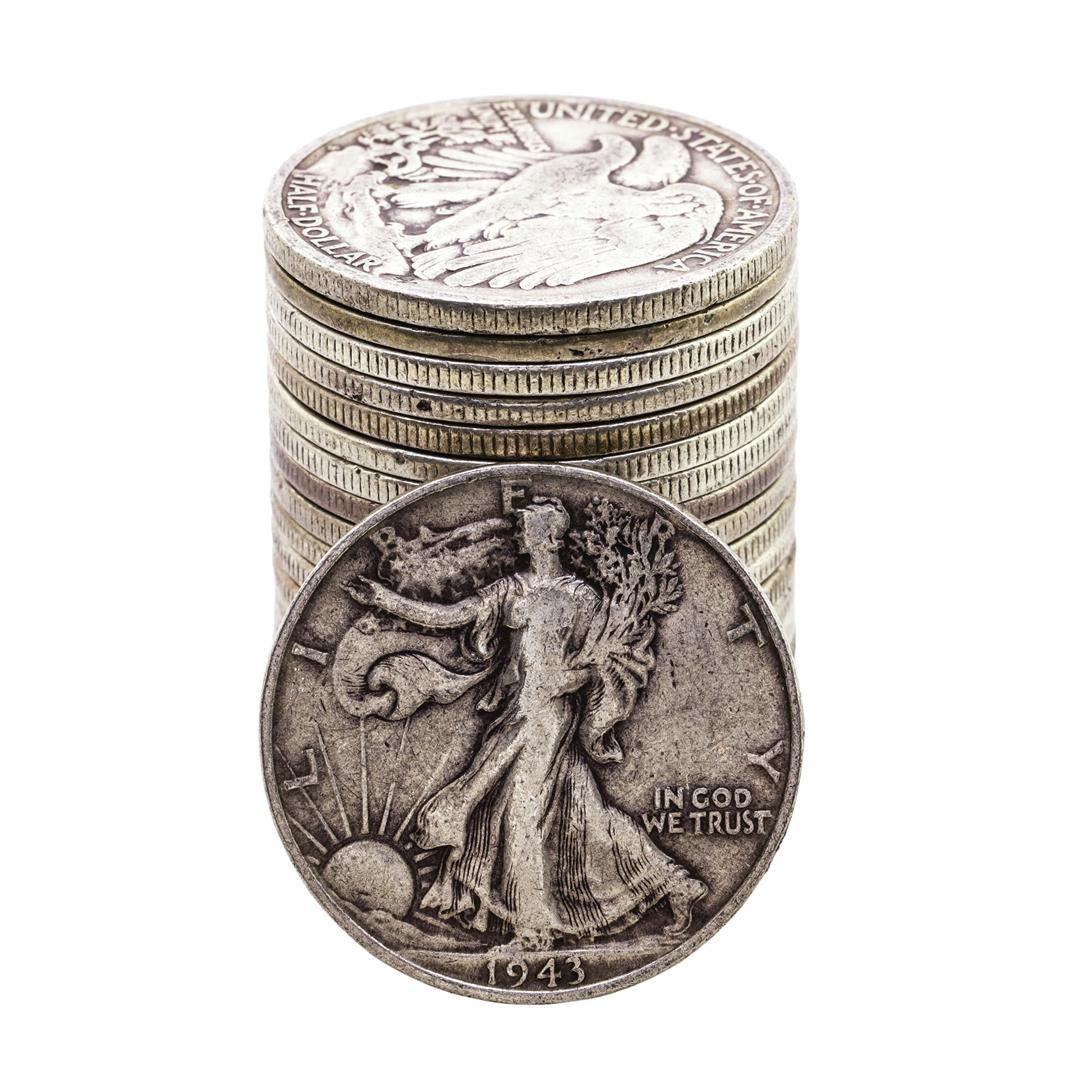 One Roll of (20) Assorted Date Walking Liberty Half Dollar Coins Circulated.
