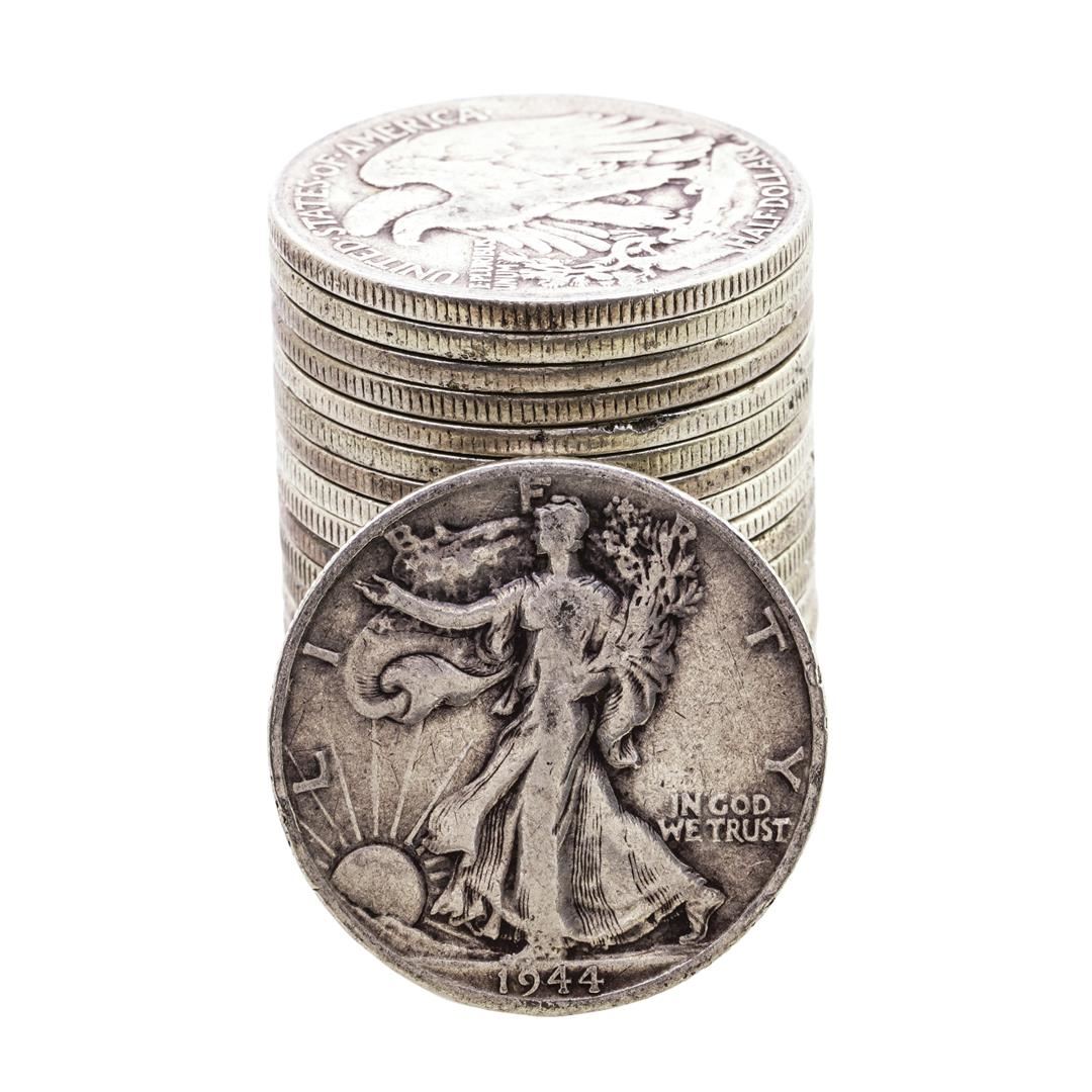 Roll of (20) Assorted Date Walking Liberty Half Dollar Coins Circulated
