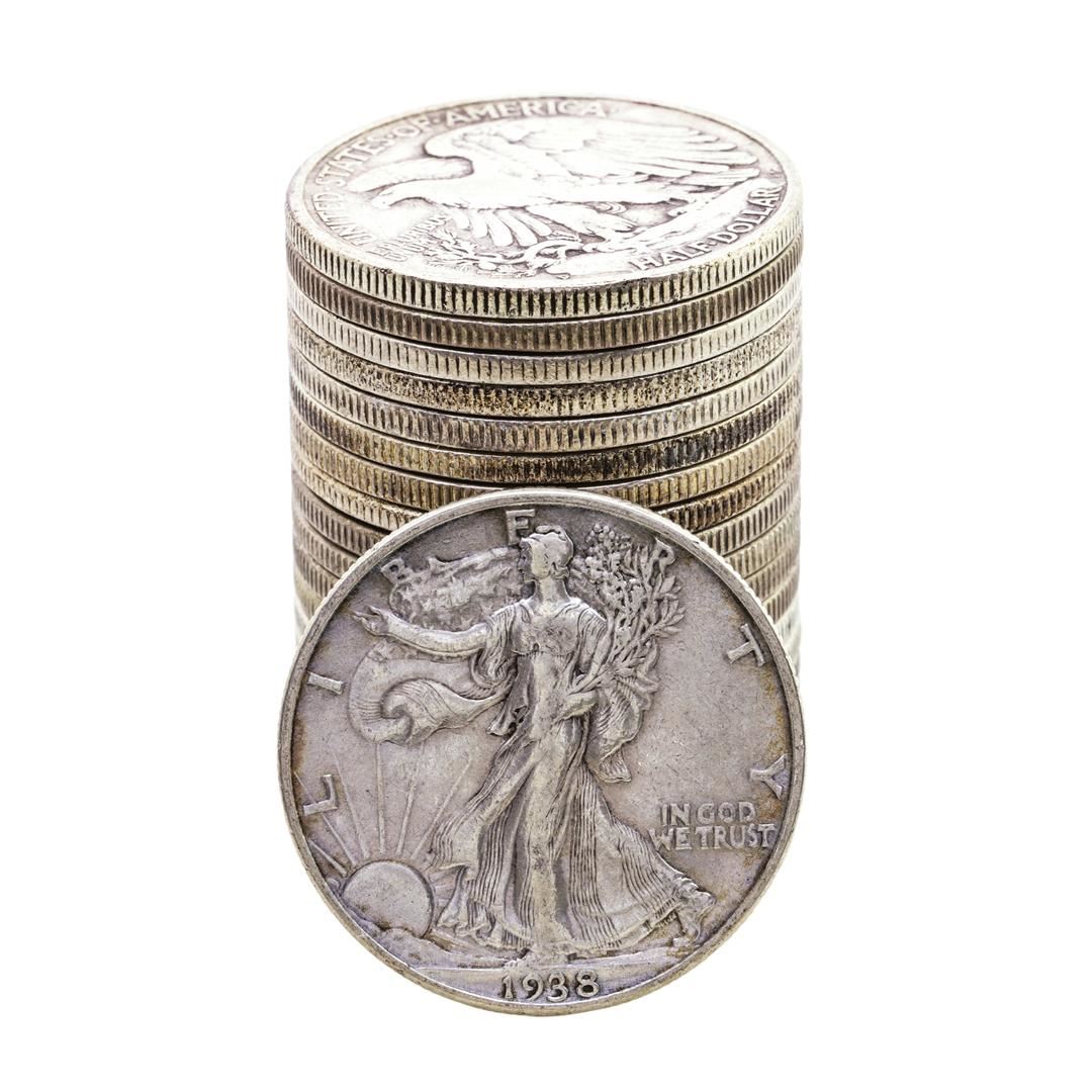 Roll of (20) Assorted Date Walking Liberty Half Dollar Coins Circulated