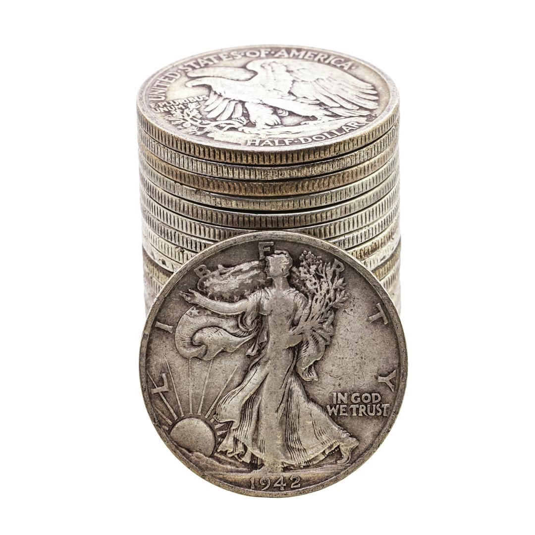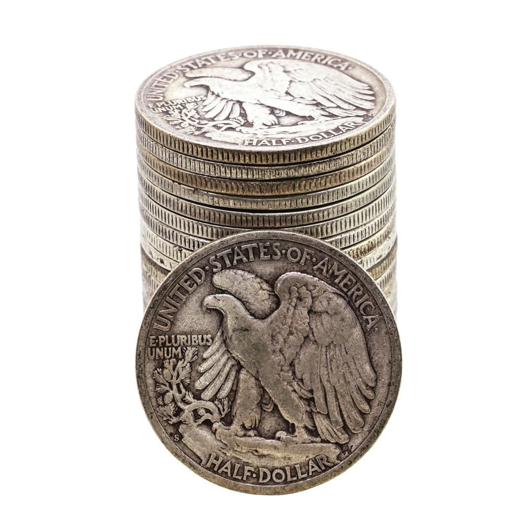One Roll of (20) Assorted Date Walking Liberty Half Dollar Coins Circulated.