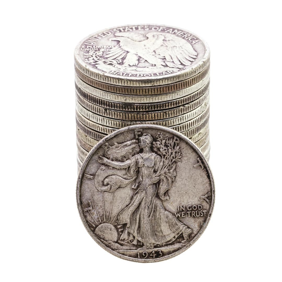 One Roll of (20) Assorted Date Walking Liberty Half Dollar Coins Circulated.
