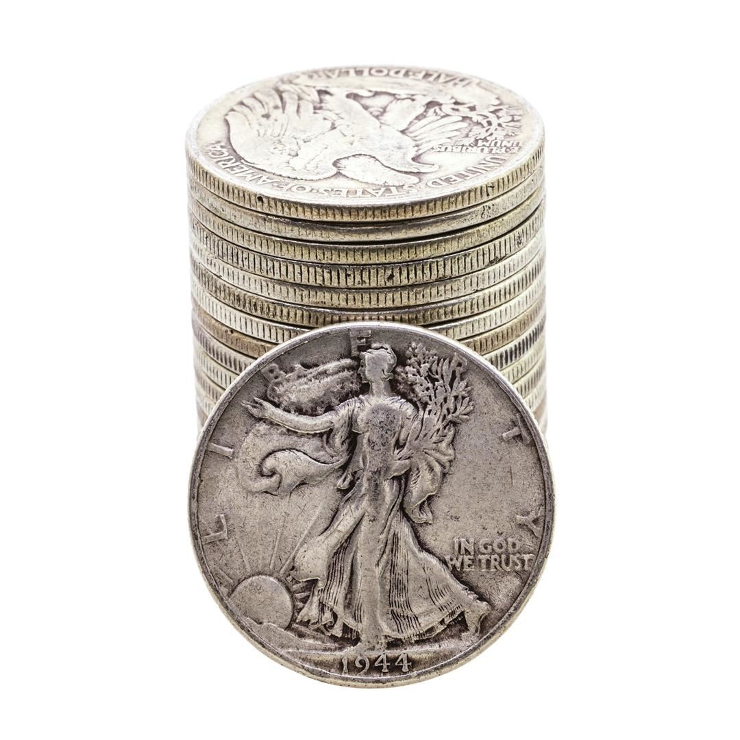 Roll of (20) Assorted Date Walking Liberty Half Dollar Coins Circulated