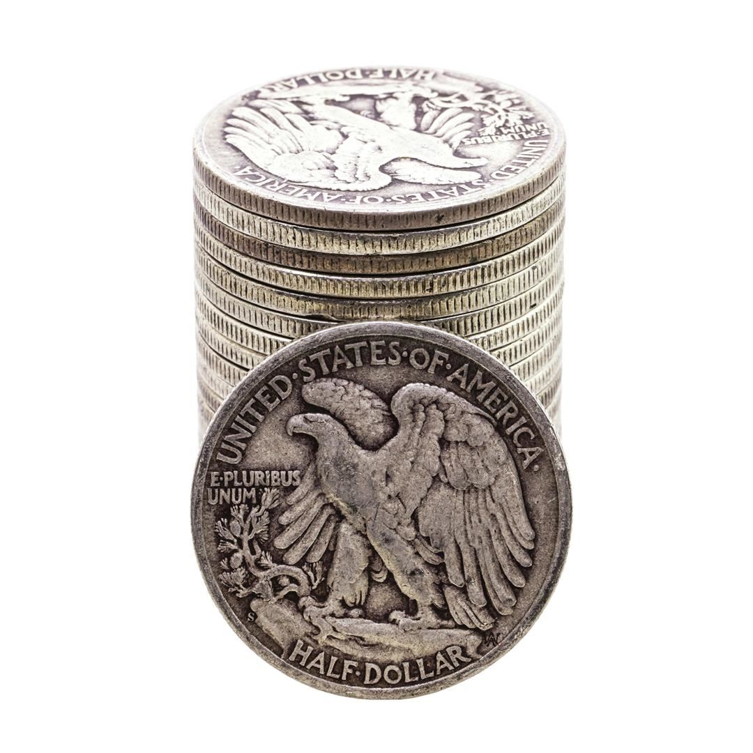 One Roll of (20) Assorted Date Walking Liberty Half Dollar Coins Circulated.