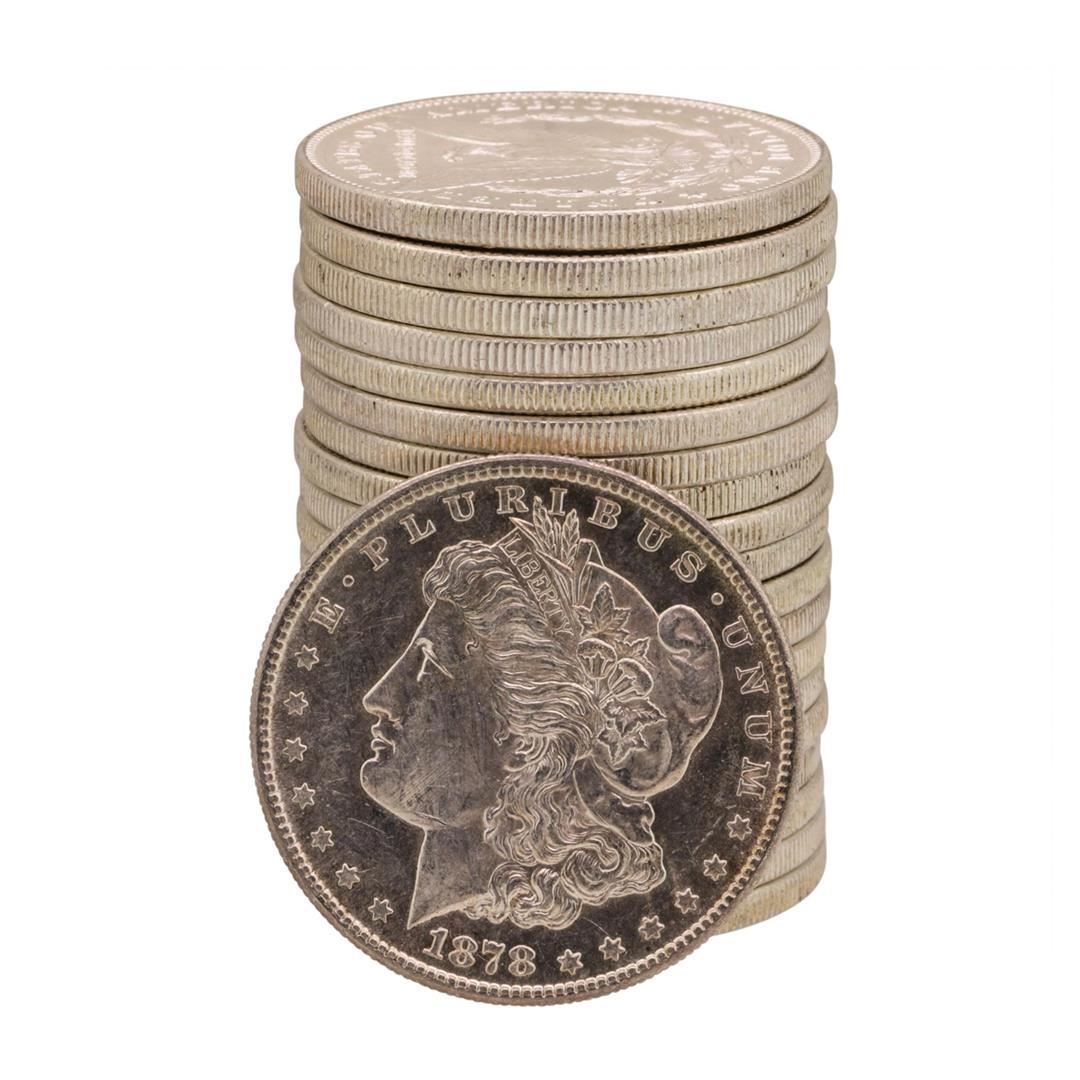 One Roll of (20) Brilliant Uncirculated 1878-S $1 Morgan Silver Dollar Coins.