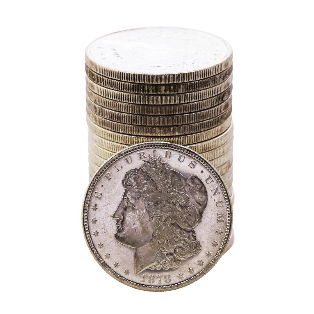 One Roll of (20) Brilliant Uncirculated 1878-S $1 Morgan Silver Dollar Coins.