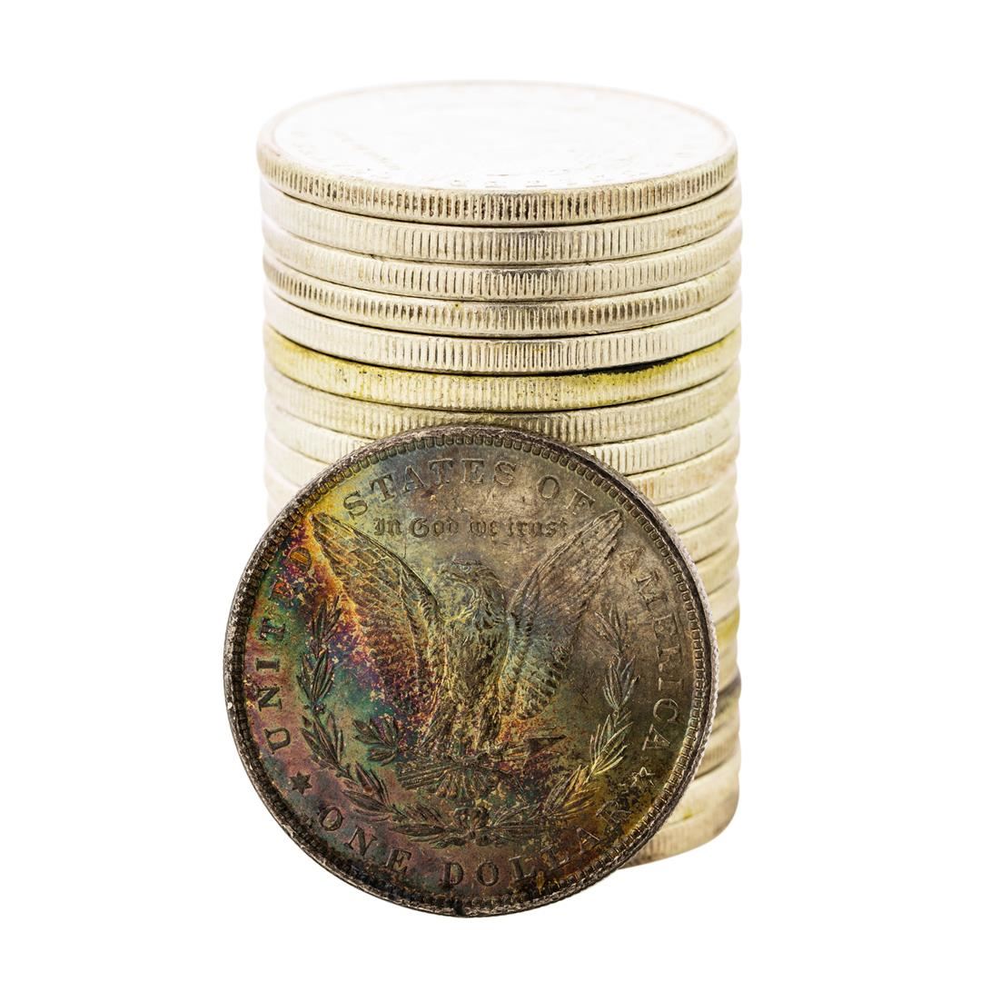 One Roll of (20) Brilliant Uncirculated 1882 $1 Morgan Silver Dollar Coins Amazing Toning.