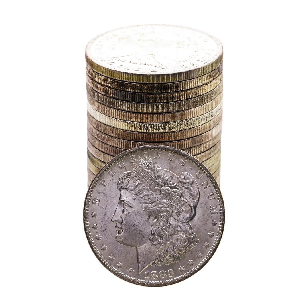 One Roll of (20) Brilliant Uncirculated 1883-O $1 Morgan Silver Dollar Coins.