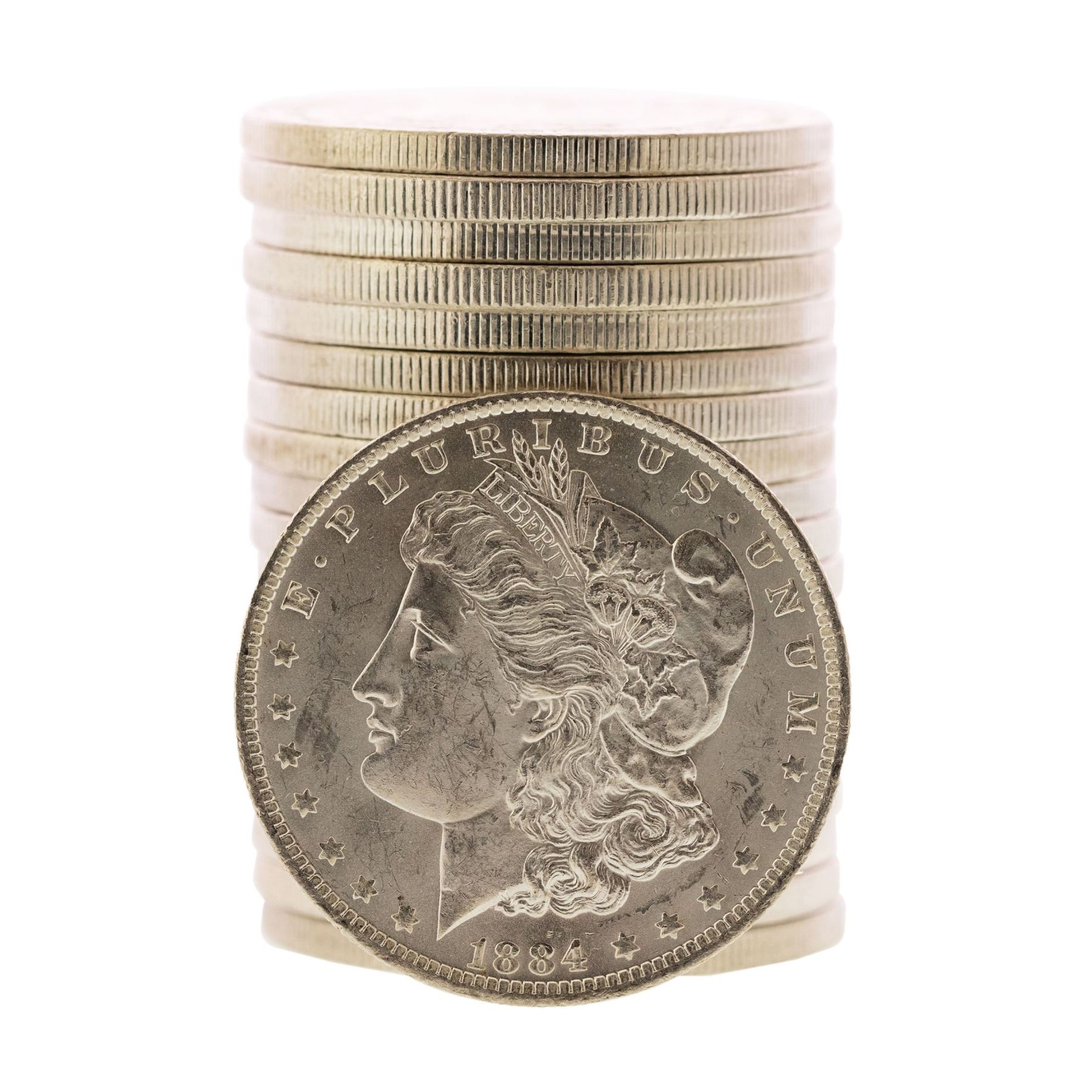 One Roll of (20) Brilliant Uncirculated 1884-O $1 Morgan Silver Dollar Coins.