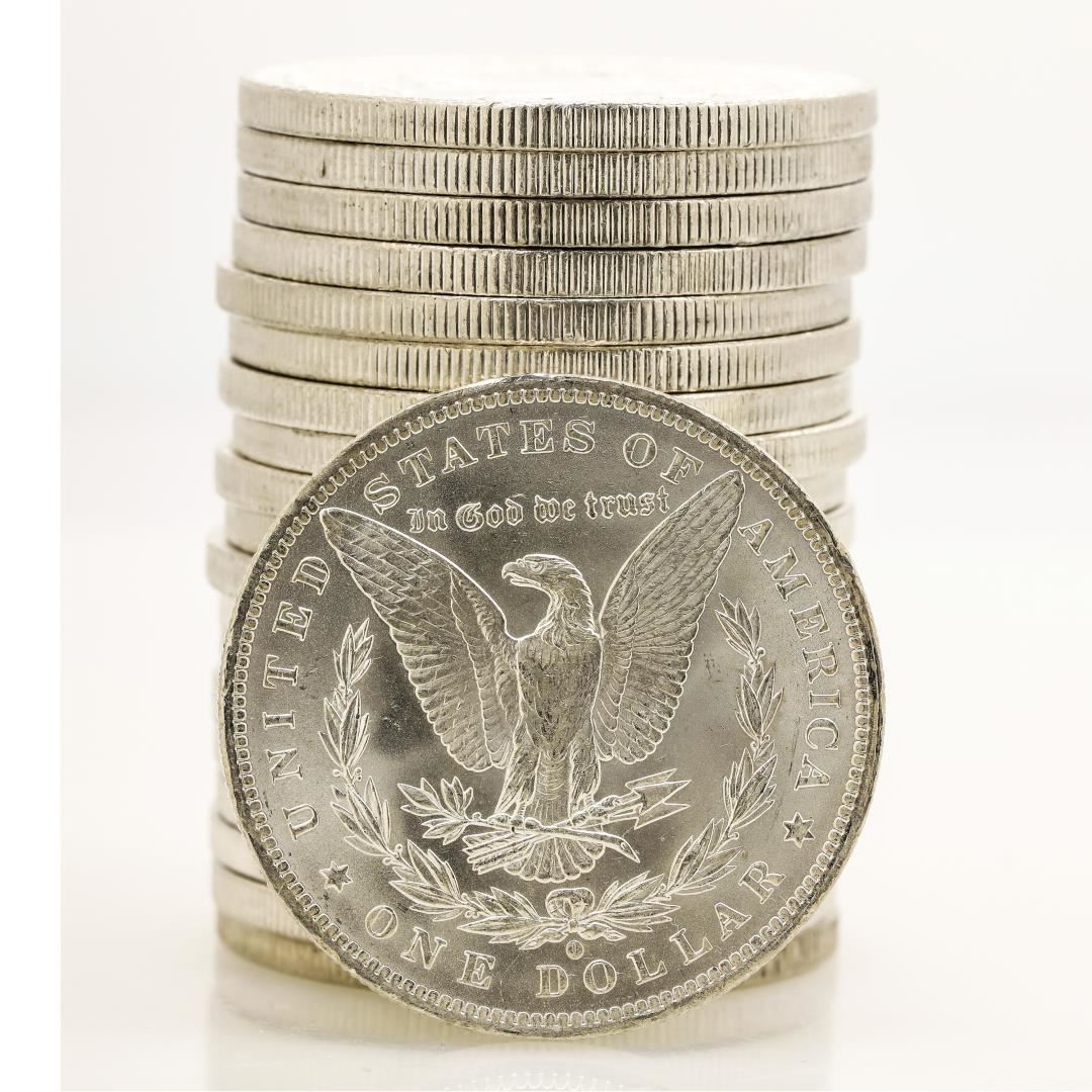 Roll of (20) Brilliant Uncirculated 1884-O/1902-O $1 Morgan Silver Dollar Coins. This roll contains (19) x 1884-O & (1) x 1902-O Coins.