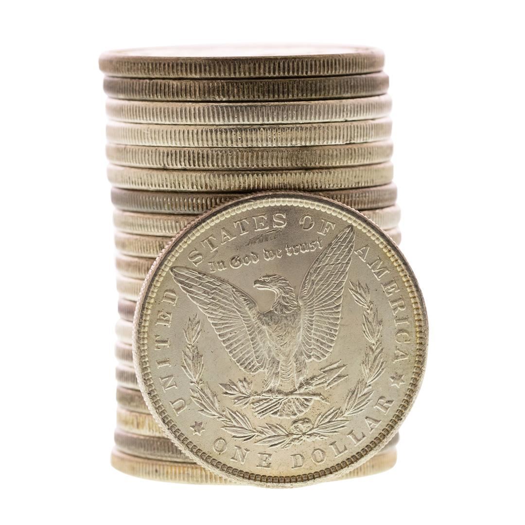 One Roll of (20) Brilliant Uncirculated 1885 $1 Morgan Silver Dollar Coins.