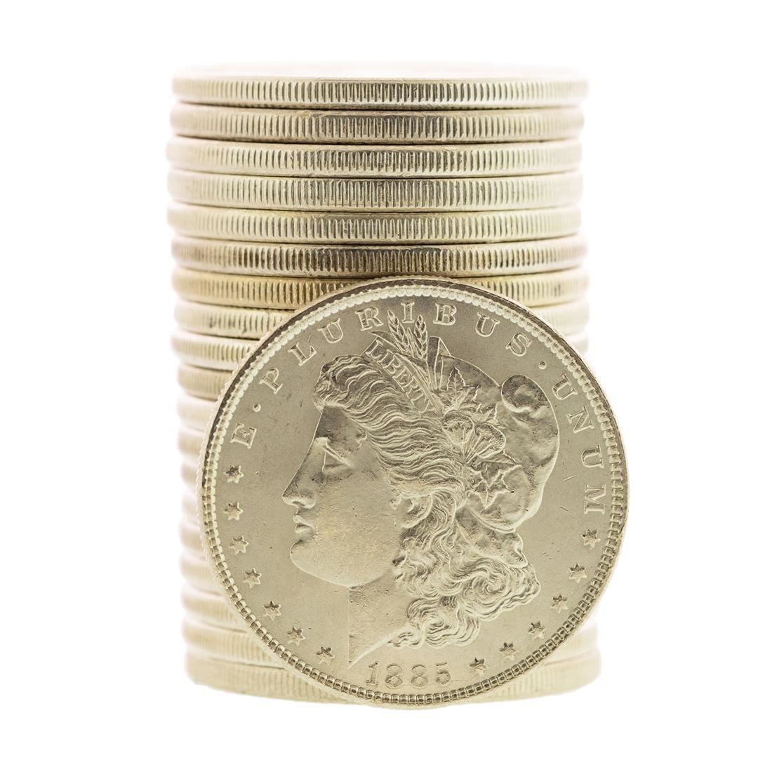 One Roll of (20) Brilliant Uncirculated 1885 $1 Morgan Silver Dollar Coins.