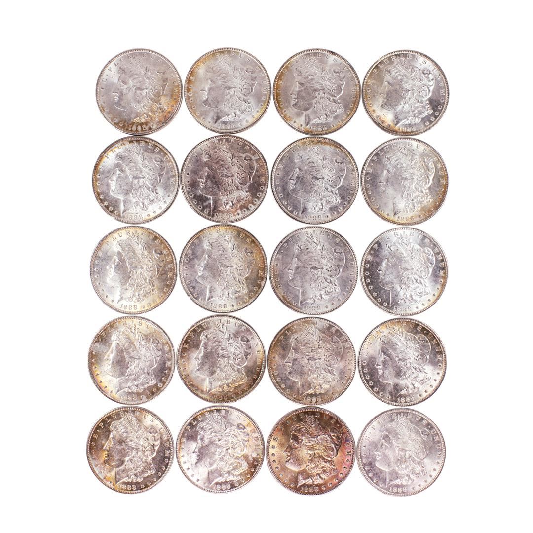 One Roll of (20) Brilliant Uncirculated 1888 $1 Morgan Silver Dollar Coins Nice Toning.