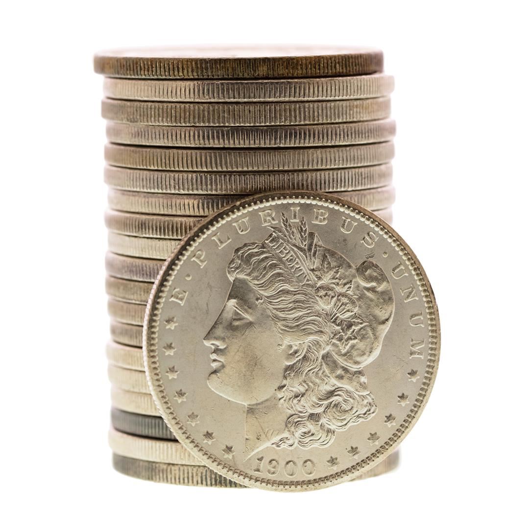 One Roll of (20) Brilliant Uncirculated 1900 $1 Morgan Silver Dollar Coins.