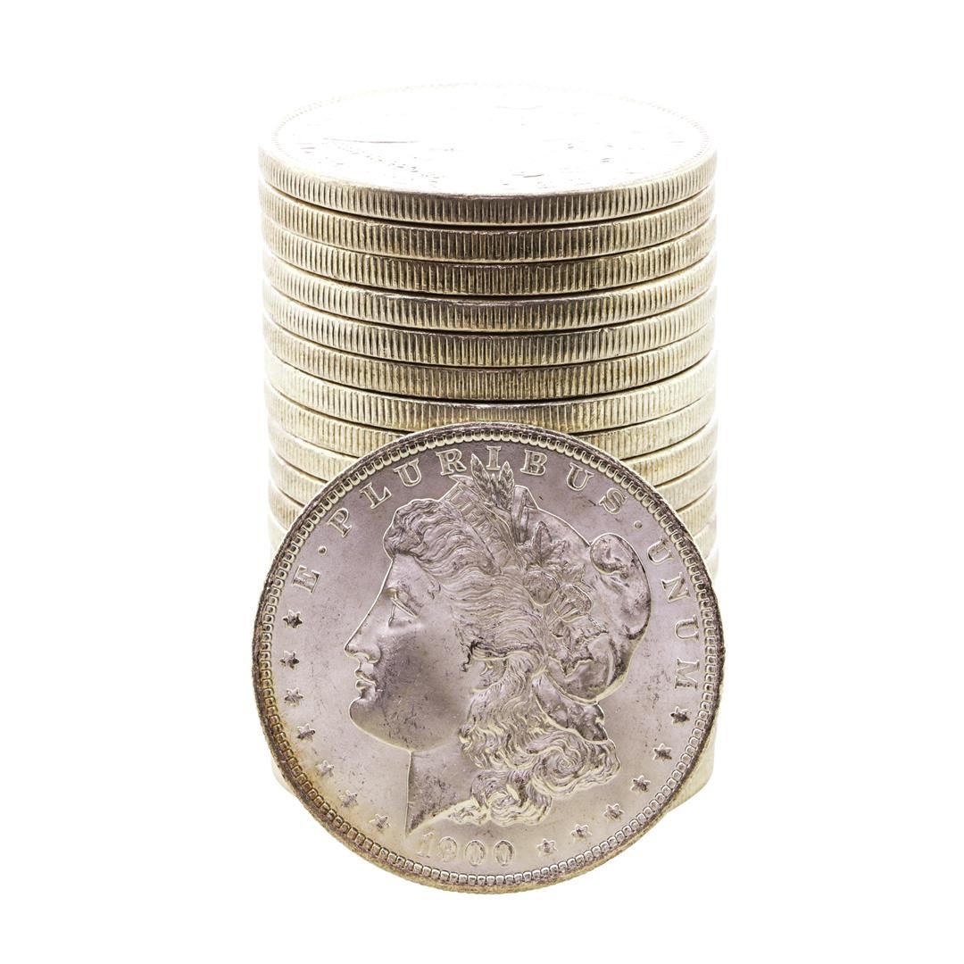 One Roll of (20) Brilliant Uncirculated 1900 $1 Morgan Silver Dollar Coins.