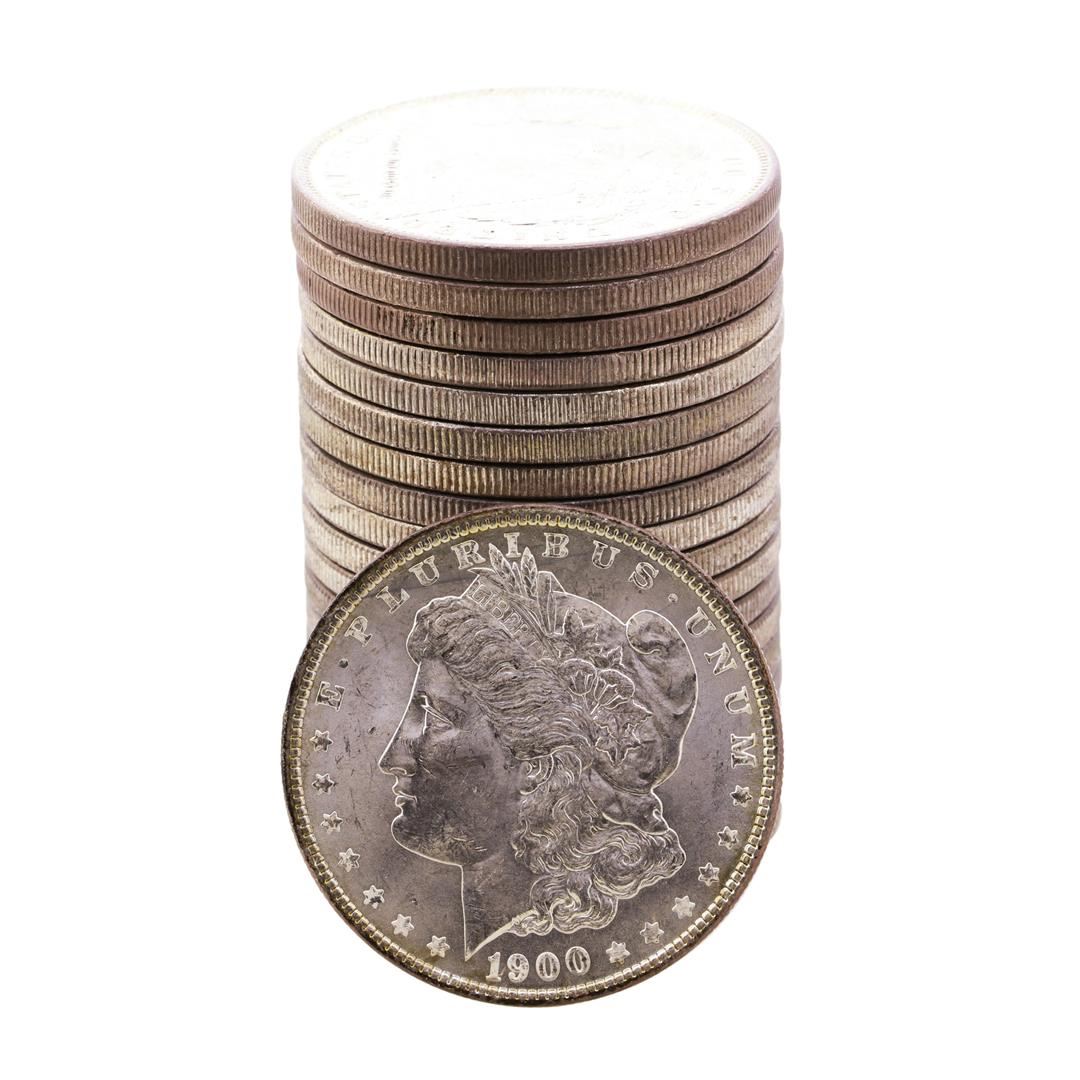 One Roll of (20) Brilliant Uncirculated 1900 $1 Morgan Silver Dollar Coins.
