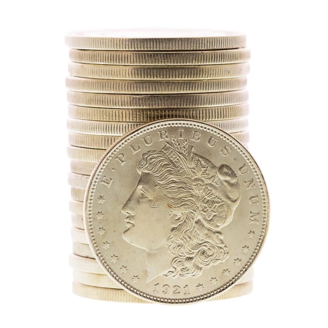 Roll of (20) Brilliant Uncirculated 1921 $1 Morgan Silver Dollar Coins