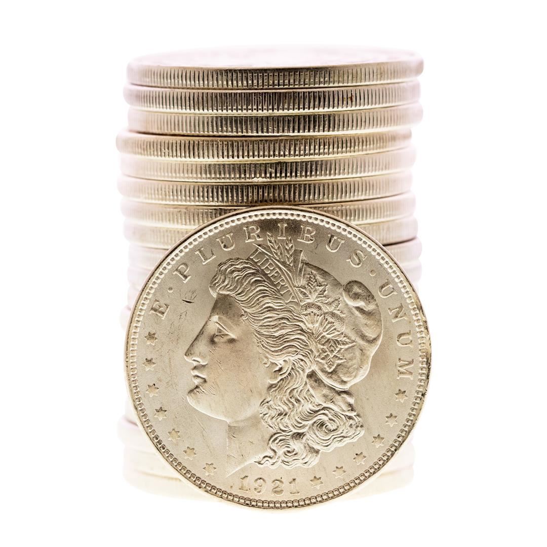 Roll of (20) Brilliant Uncirculated 1921 $1 Morgan Silver Dollar Coins