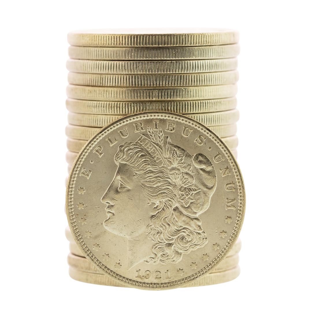 Roll of (20) Brilliant Uncirculated 1921 $1 Morgan Silver Dollar Coins