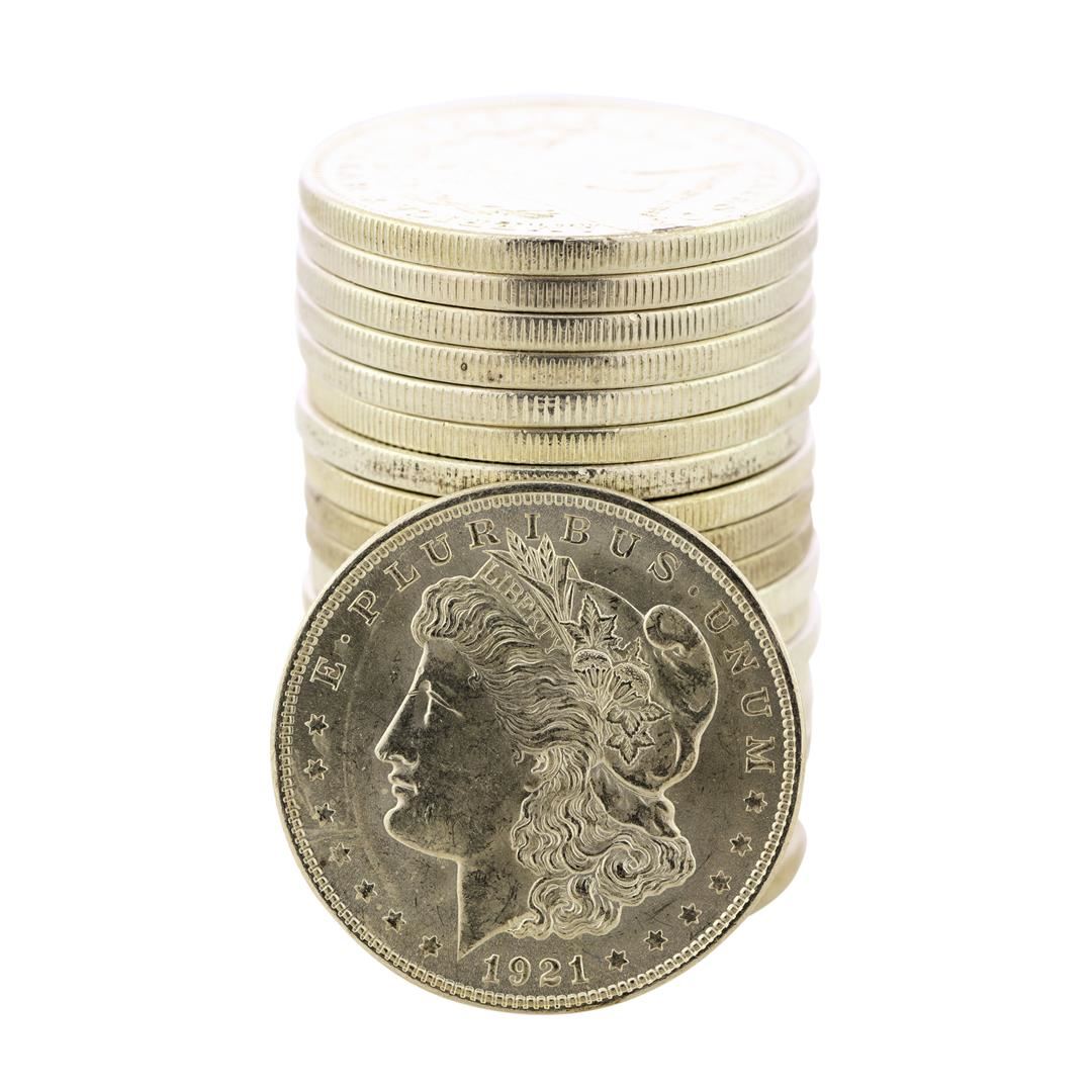 Roll of (20) Brilliant Uncirculated 1921 $1 Morgan Silver Dollar Coins