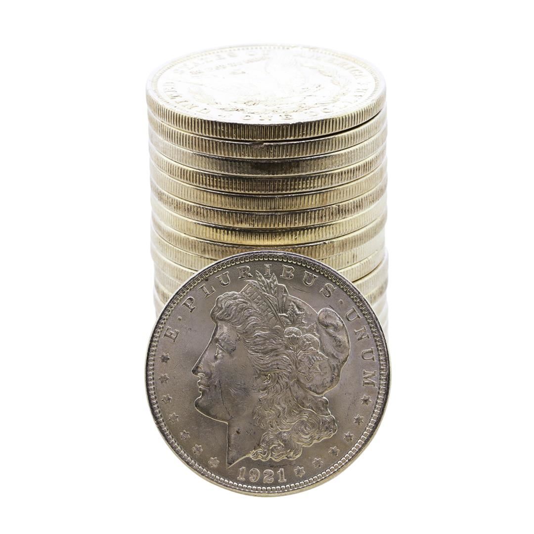 Roll of (20) Brilliant Uncirculated 1921 $1 Morgan Silver Dollar Coins