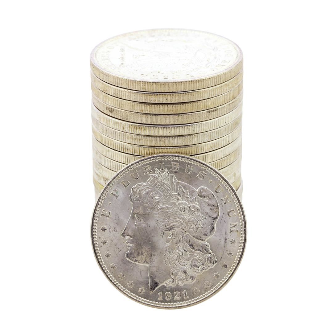 Roll of (20) Brilliant Uncirculated 1921 $1 Morgan Silver Dollar Coins