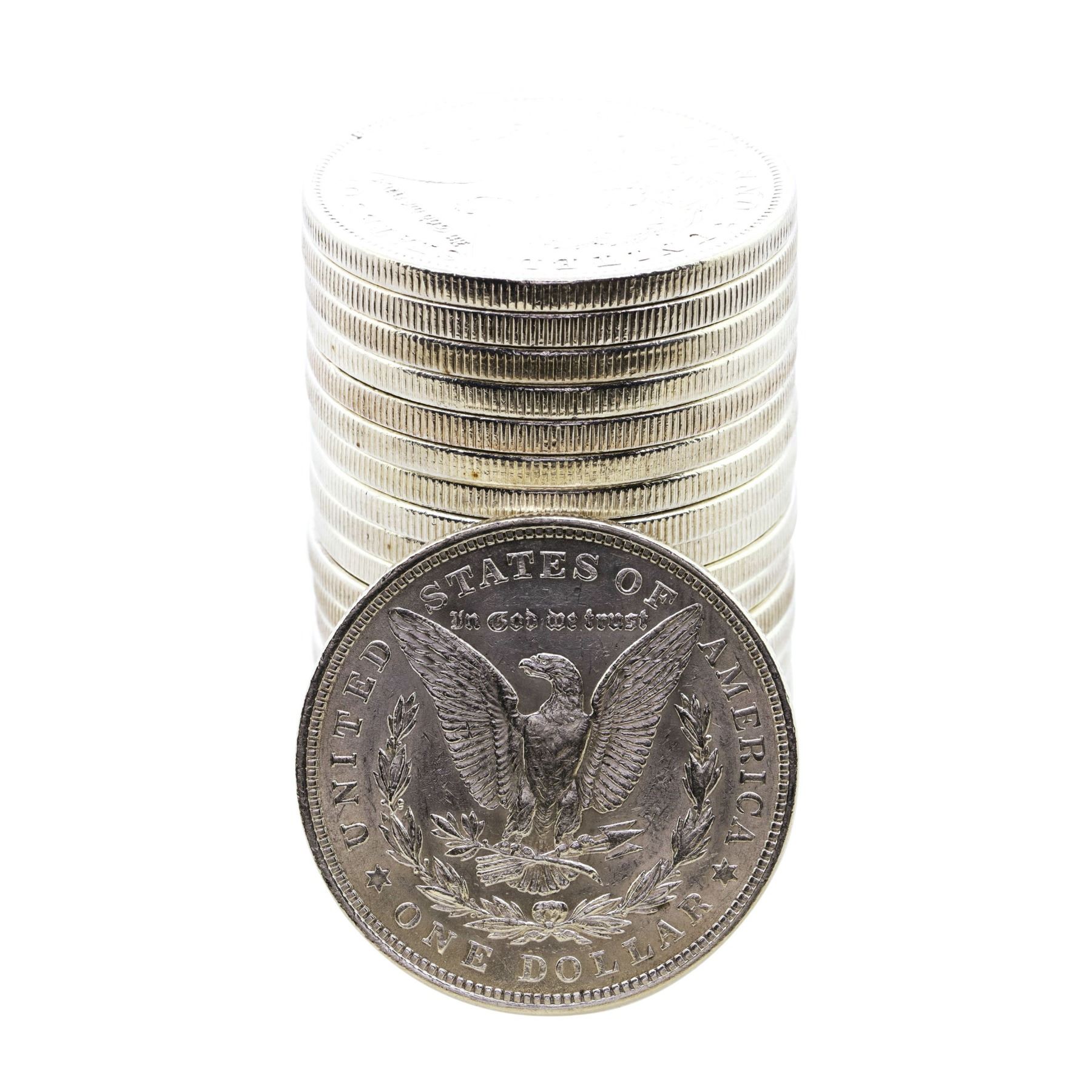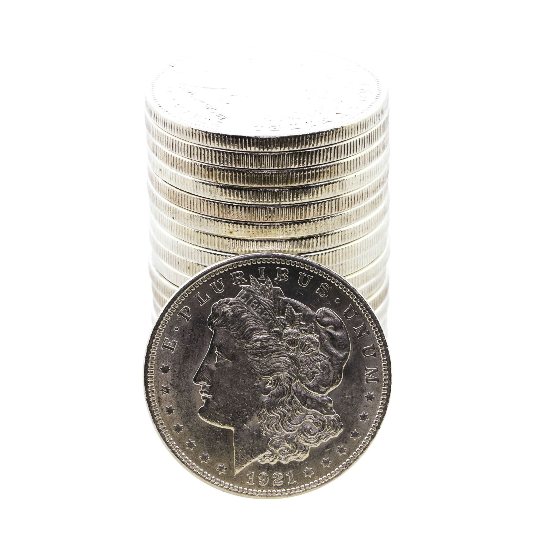 One Roll of (20) Brilliant Uncirculated 1921 $1 Morgan Silver Dollar Coins.