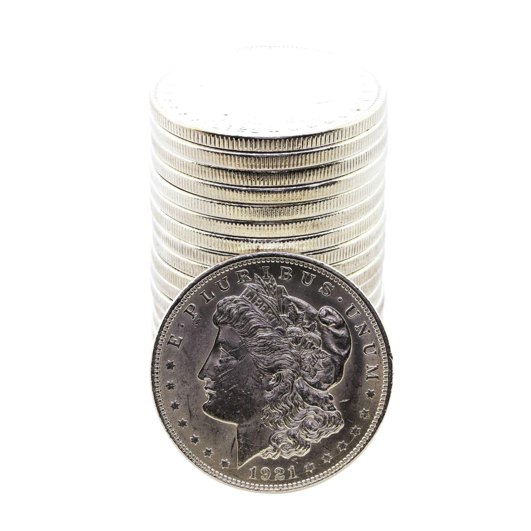 Roll of (20) Brilliant Uncirculated 1921 $1 Morgan Silver Dollar Coins