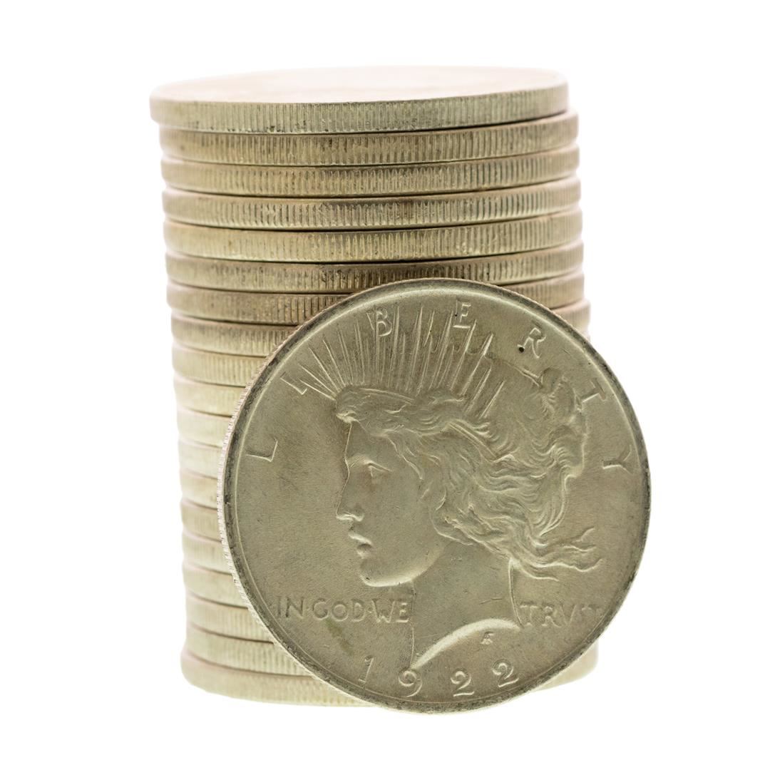 Roll of (20) Brilliant Uncirculated 1922 $1 Peace Silver Dollar Coins
