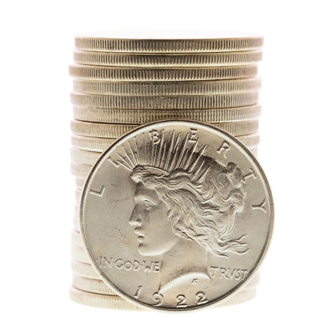 Roll of (20) Brilliant Uncirculated 1922 $1 Peace Silver Dollar Coins