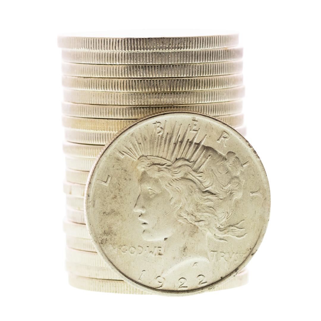 Roll of (20) Brilliant Uncirculated 1922 $1 Peace Silver Dollar Coins