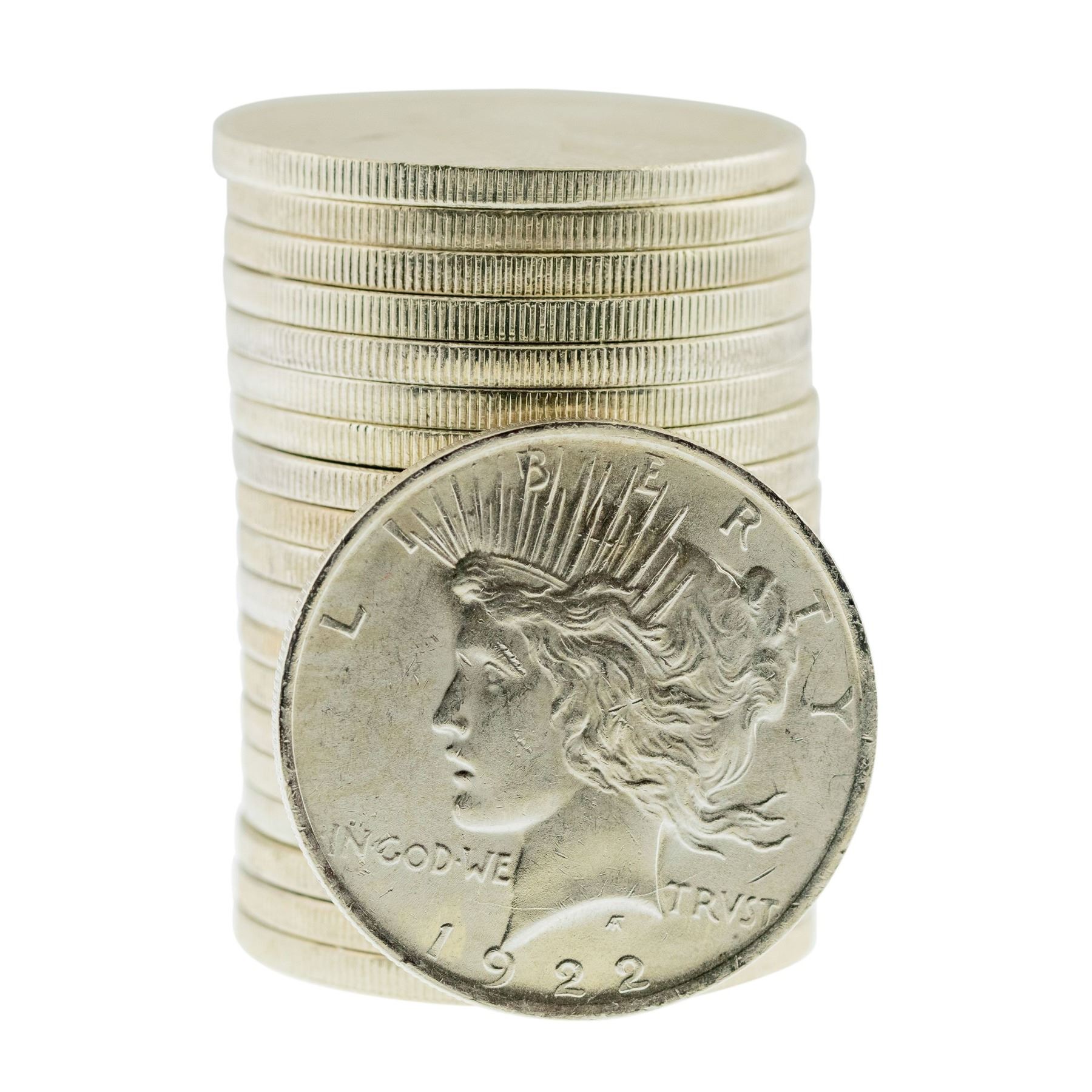 One Roll of (20) Brilliant Uncirculated 1922 $1 Peace Silver Dollar Coins.