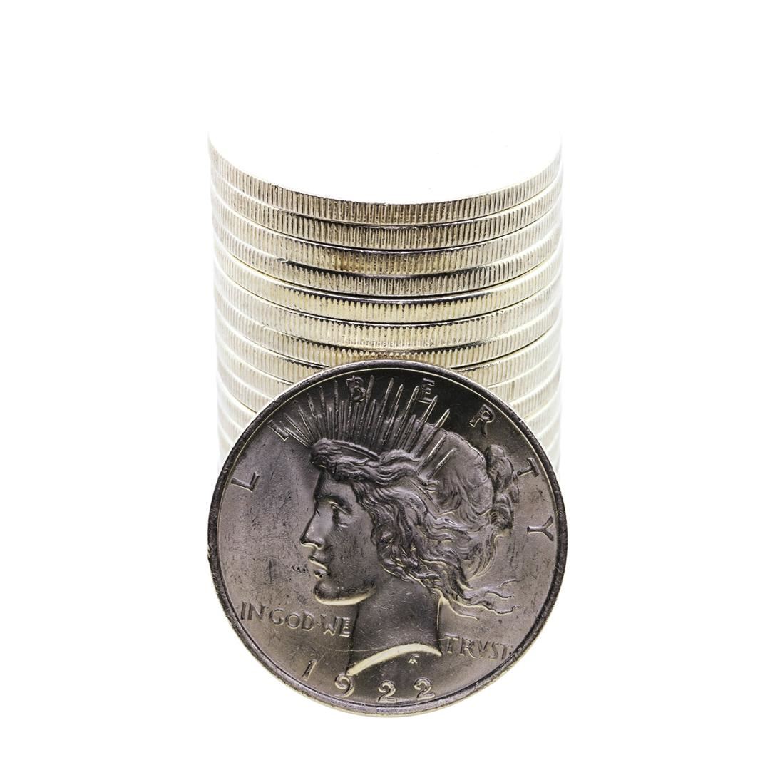 Roll of (20) Brilliant Uncirculated 1922 $1 Peace Silver Dollar Coins