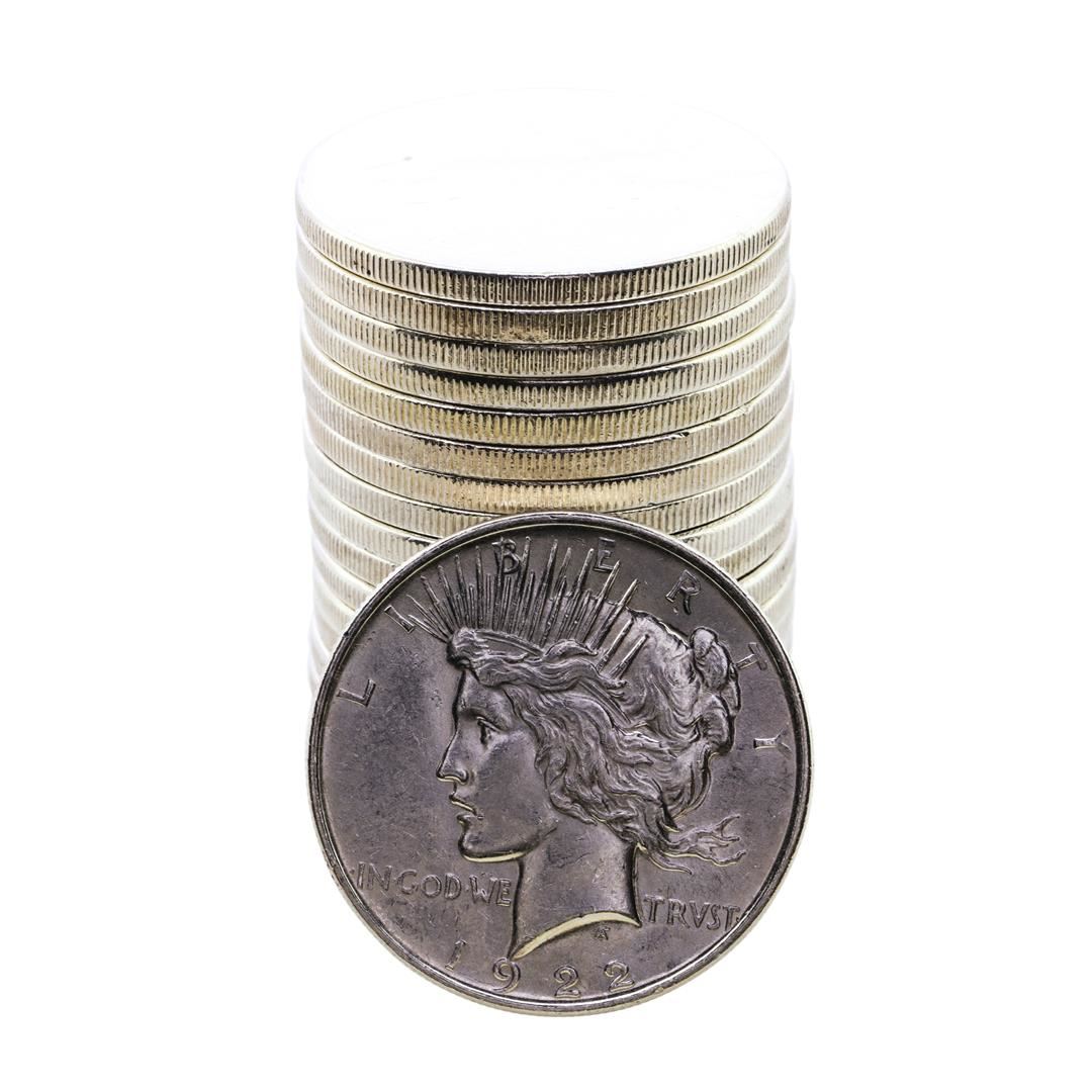 Roll of (20) Brilliant Uncirculated 1922 $1 Peace Silver Dollar Coins