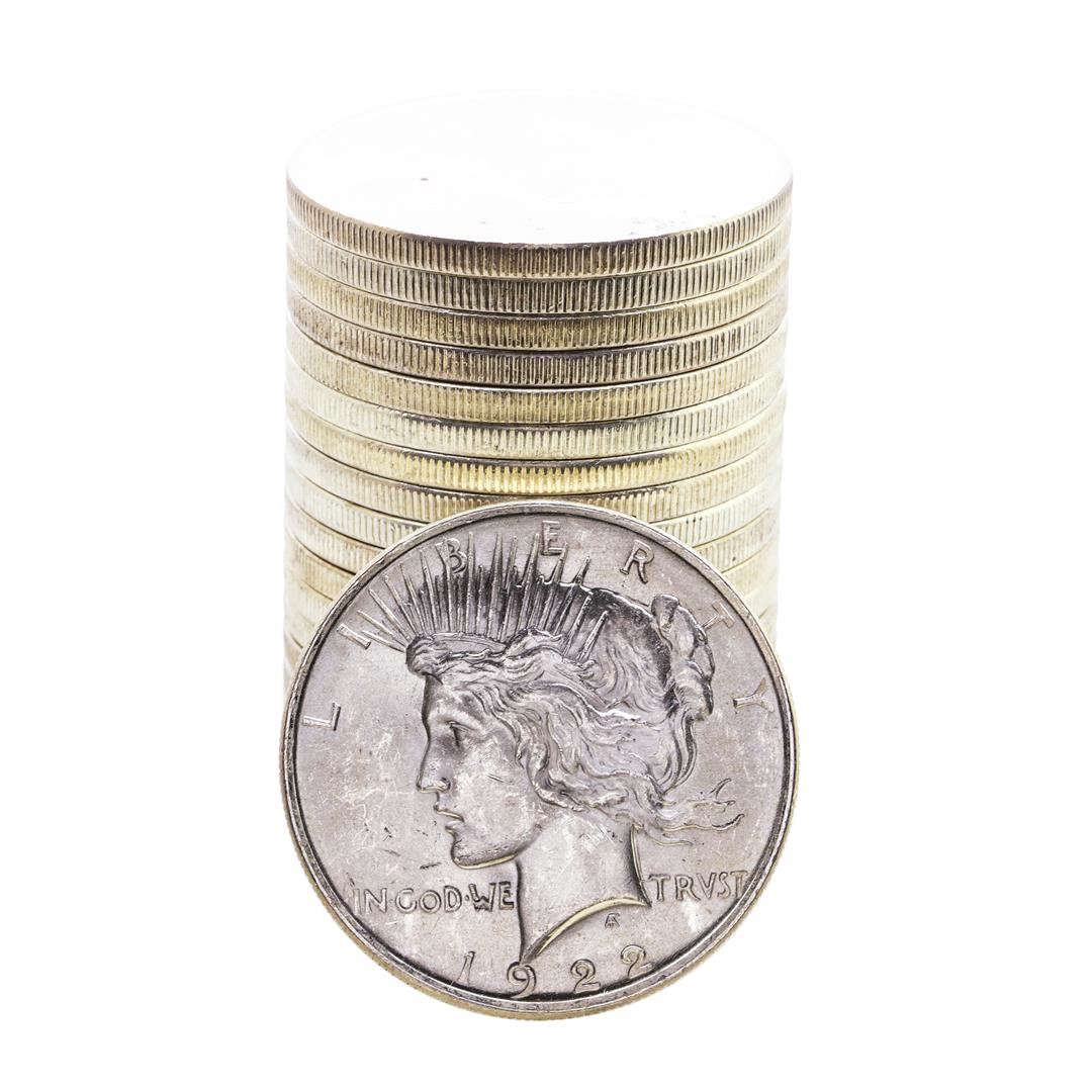 Roll of (20) Brilliant Uncirculated 1922 $1 Peace Silver Dollar Coins