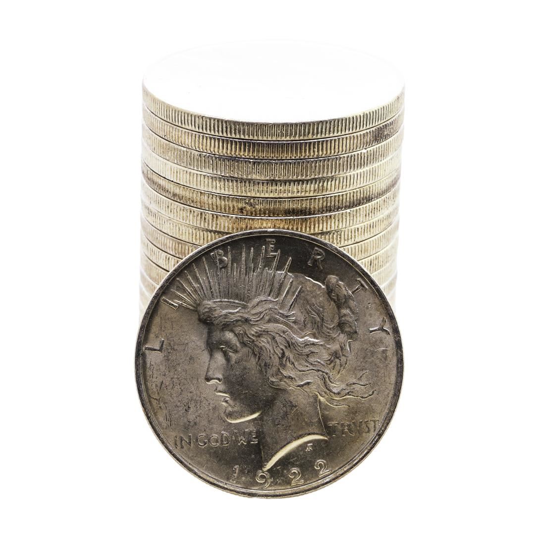 Roll of (20) Brilliant Uncirculated 1922 $1 Peace Silver Dollar Coins