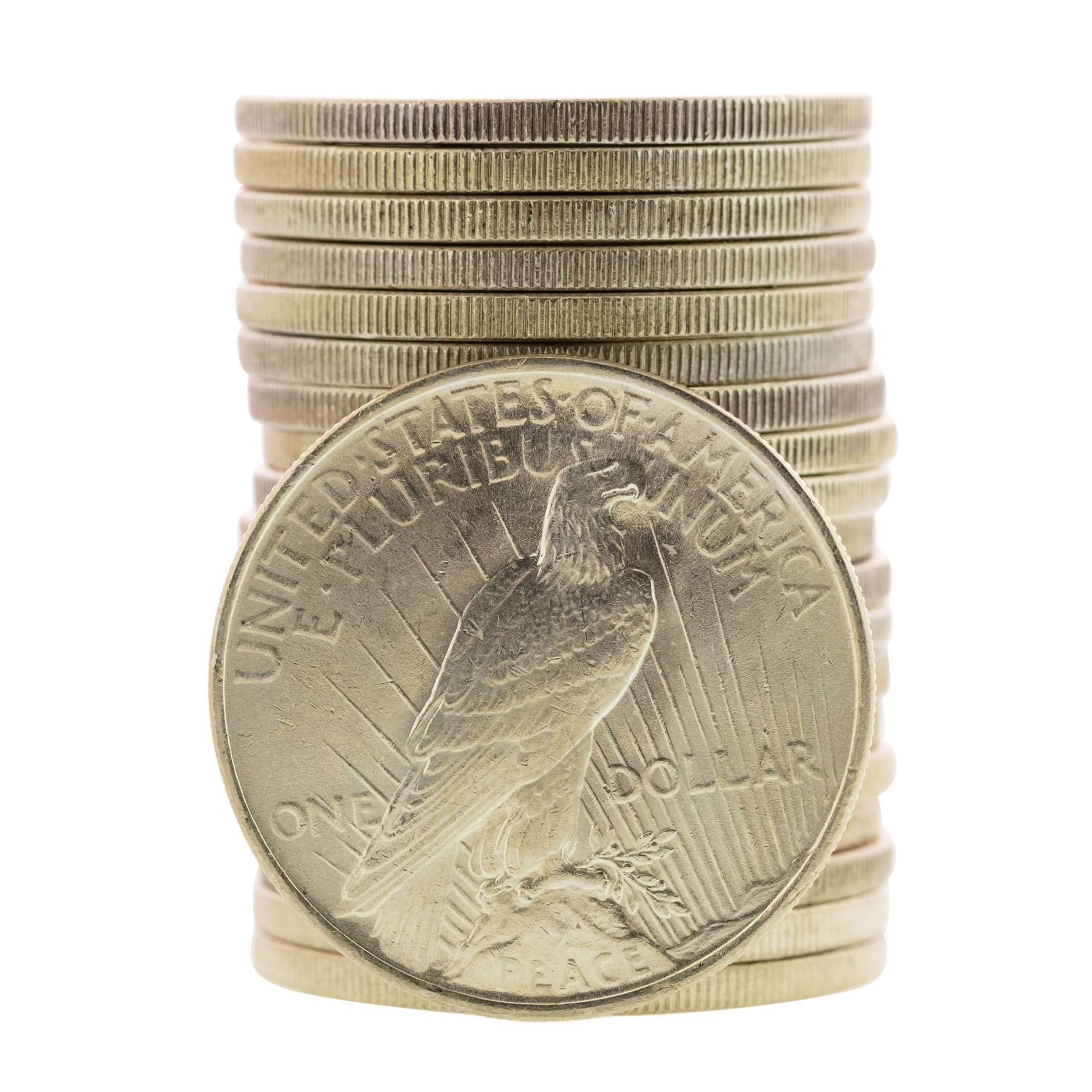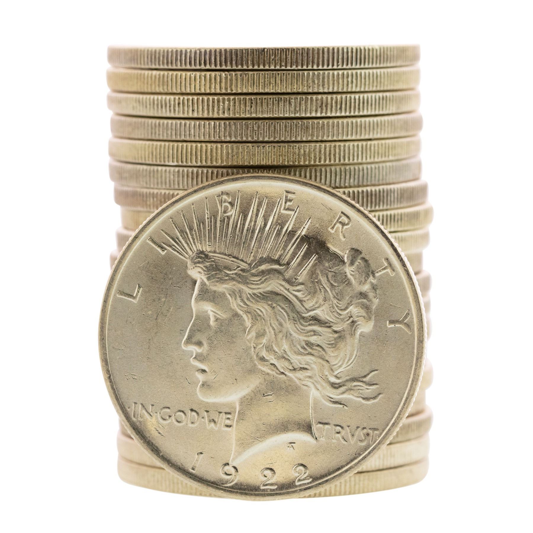 Roll of (20) Brilliant Uncirculated 1922-1925 $1 Peace Silver Dollar Coins