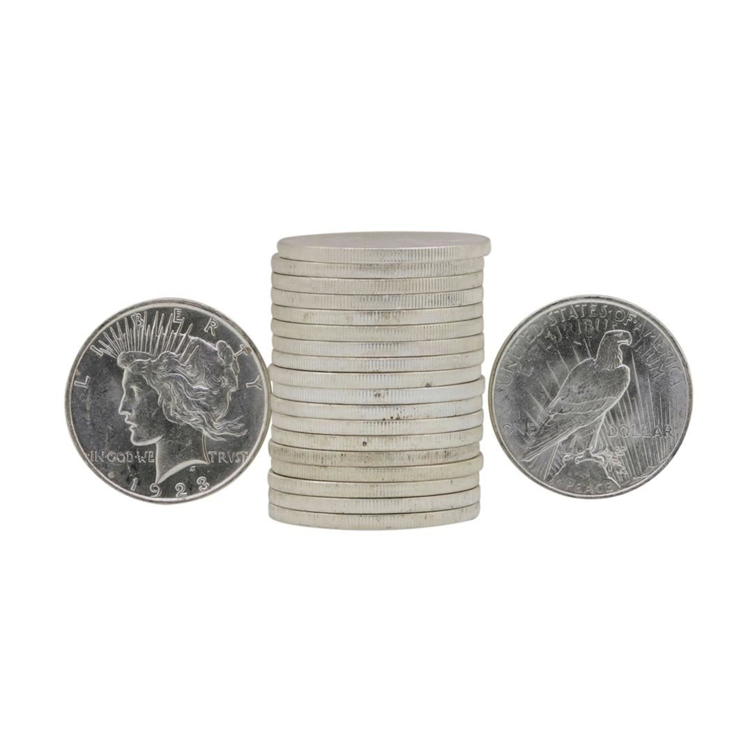 Roll of (20) Brilliant Uncirculated 1923 $1 Peace Silver Dollar Coins