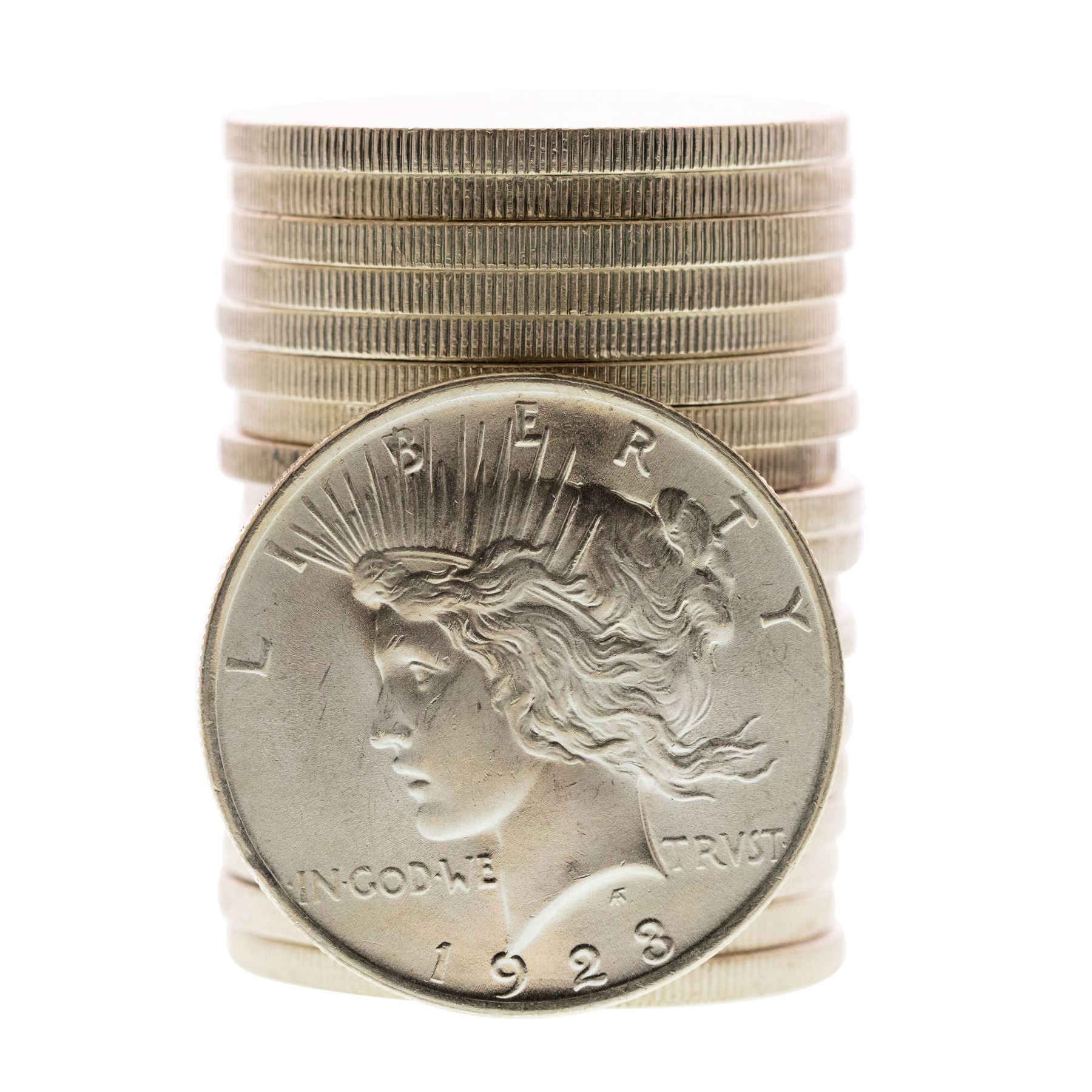 Roll of (20) Brilliant Uncirculated 1923 $1 Peace Silver Dollar Coins