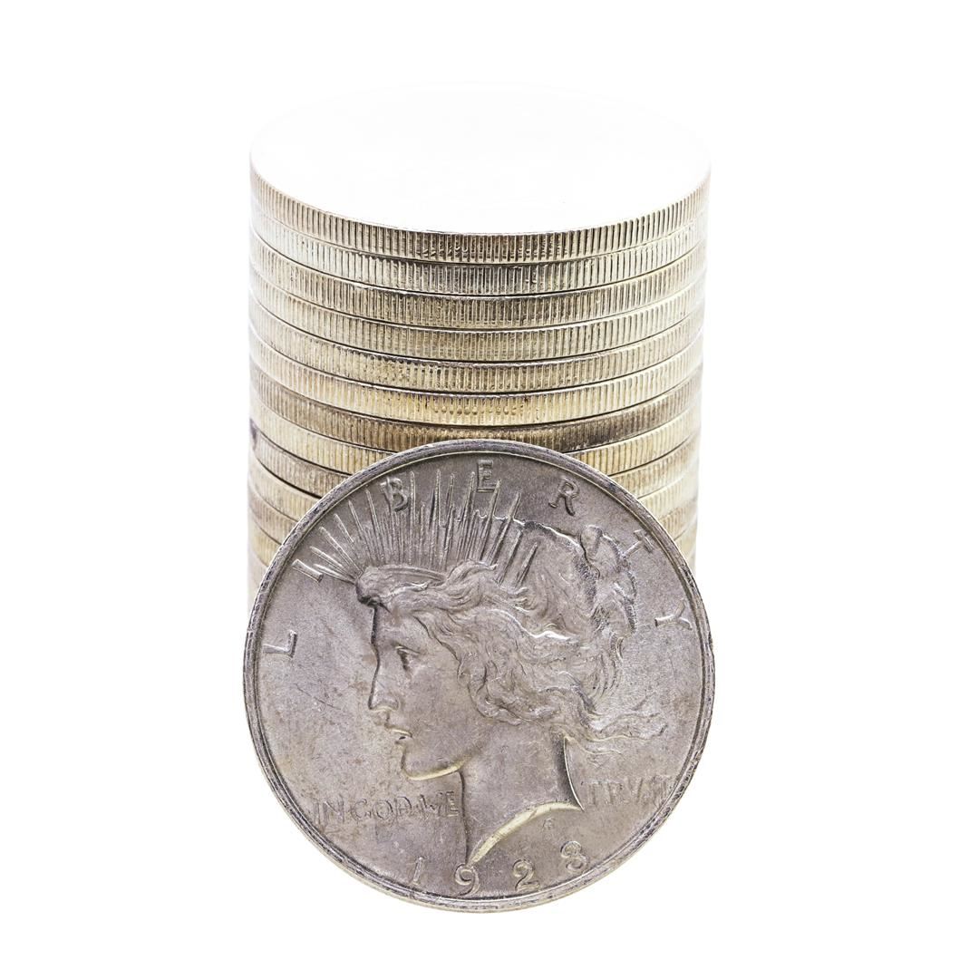 Roll of (20) Brilliant Uncirculated 1923 $1 Peace Silver Dollar Coins
