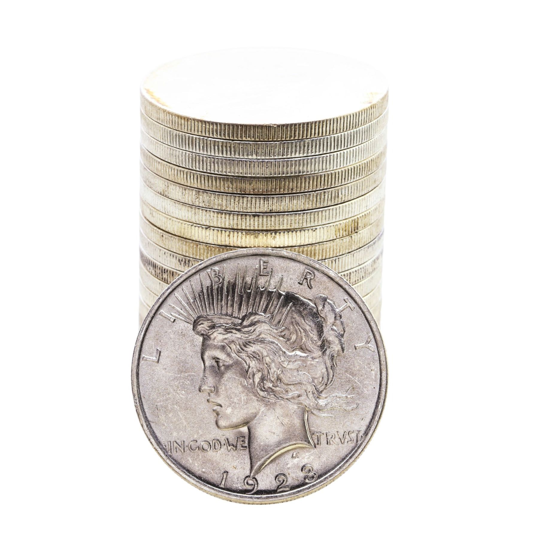 One Roll of (20) Brilliant Uncirculated 1923 $1 Peace Silver Dollar Coins.