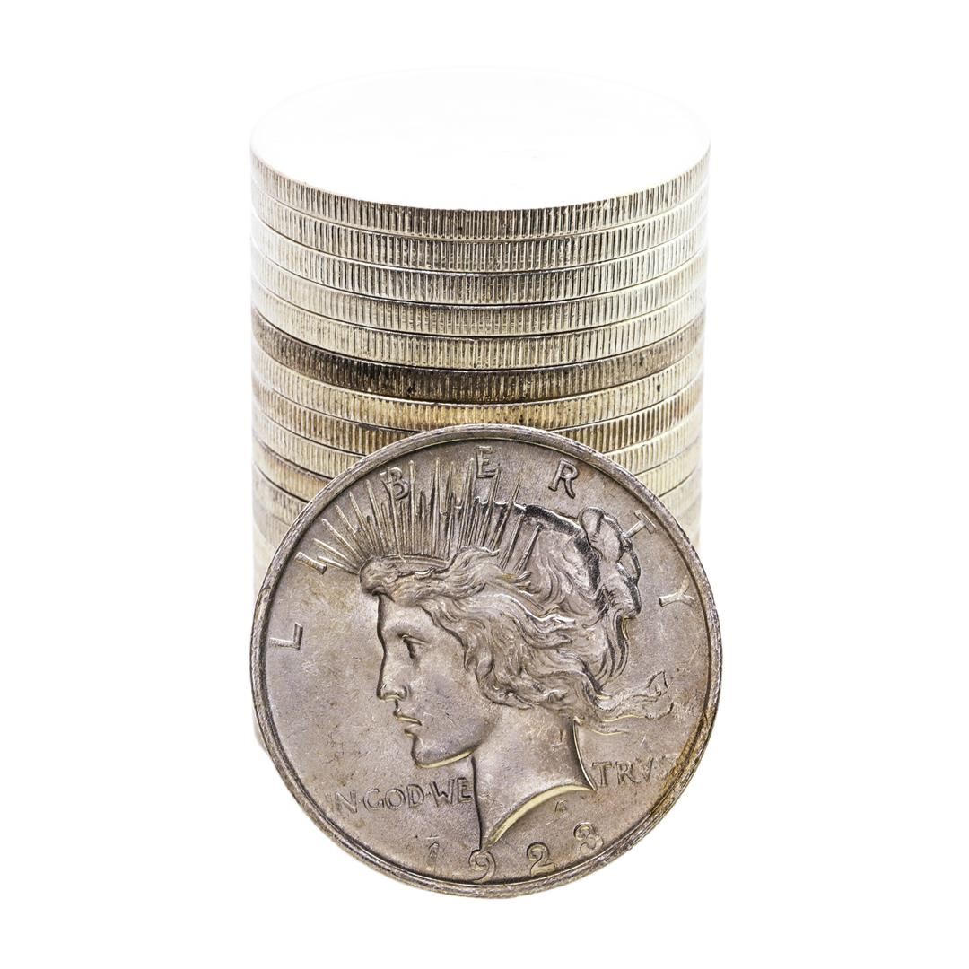 Roll of (20) Brilliant Uncirculated 1923 $1 Peace Silver Dollar Coins